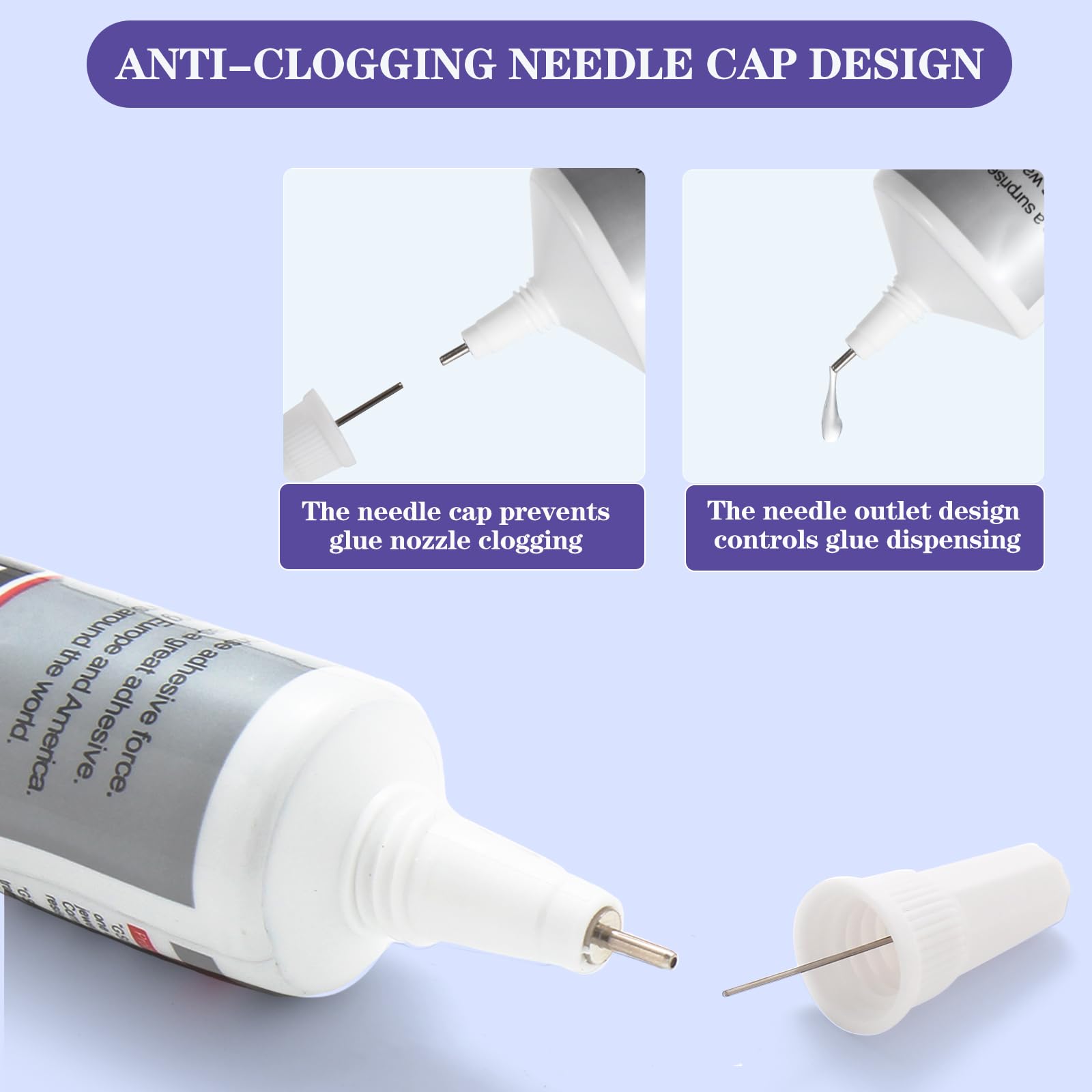 【Anti-clogging Cap & Precision-Tips】Rhinestone glue for crafts with needle designed cap prevents clogging, ultra-fine tip allows small adhesive glue drops well controlled. This b7000 glue clear for rhinestones is suit for fine, precise, controlled