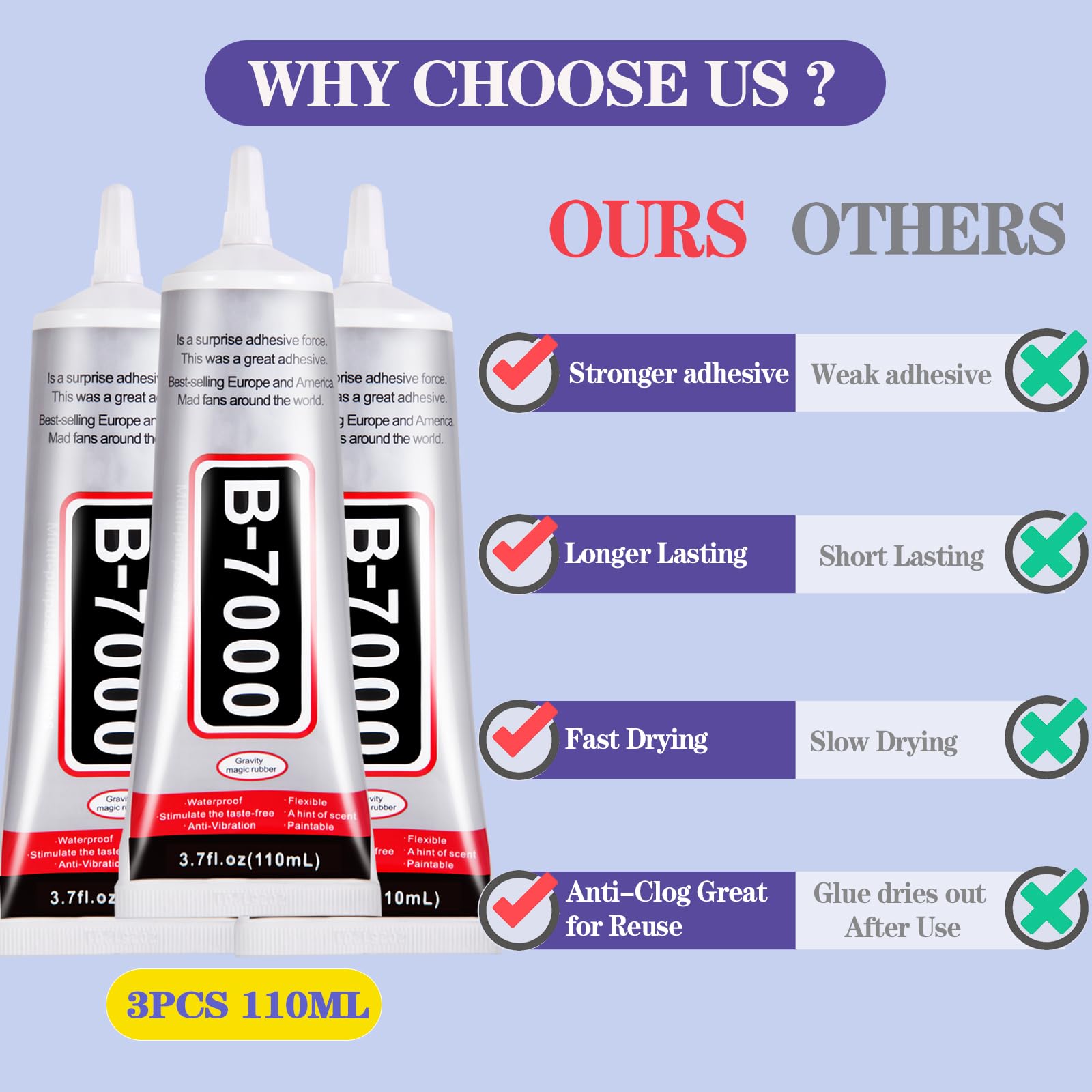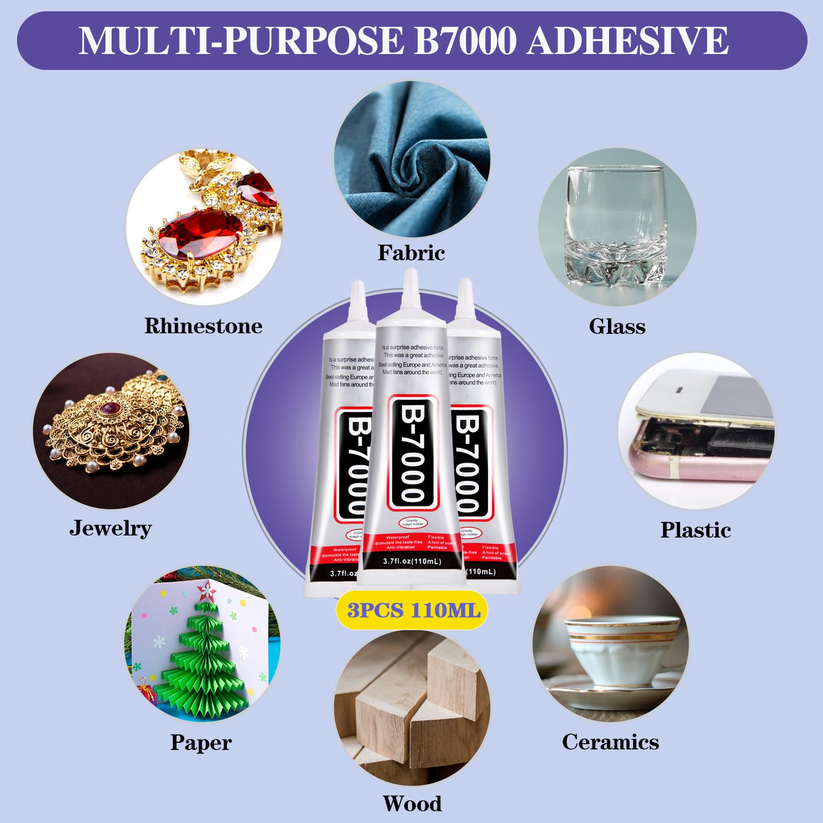【3 Pack 110ml/3.7oz Large Capaity Glue】This glue set includes 3 pcs of 110ml B7000 glue. Each bottle of B7000 adhesive boasts a generous 110ml capacity, providing you with plenty of glue for multiple uses to tackle various projects. Three bottles ensures that you have enough spare glue to meet your daily needs for various crafts.