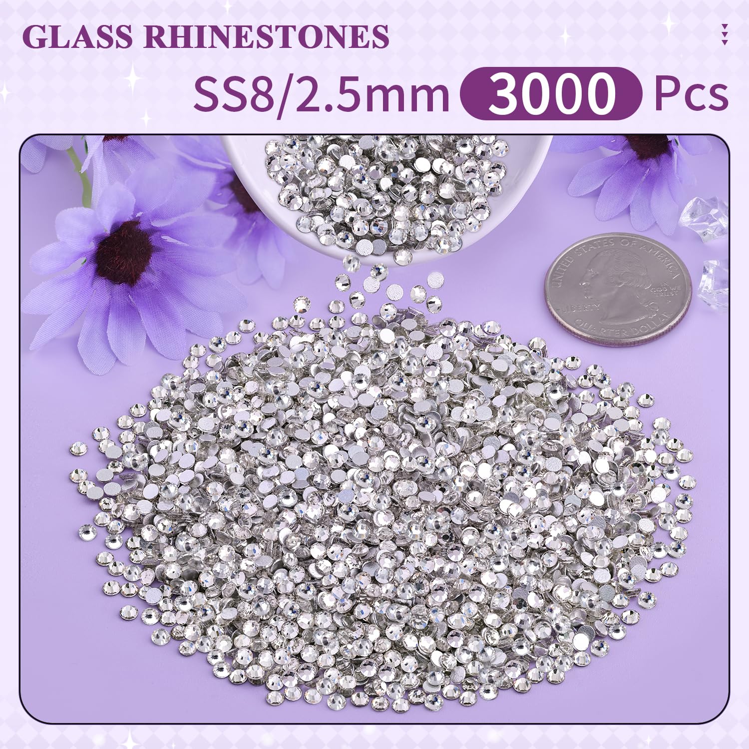 💎WHAT WILL YOU GET -- The package contains about 3000 pcs SS8 (0.10") blingbling glass rhinestones (Clear). The large amount will support you to fulfill a number of your wonderful DIY decoration ideas.