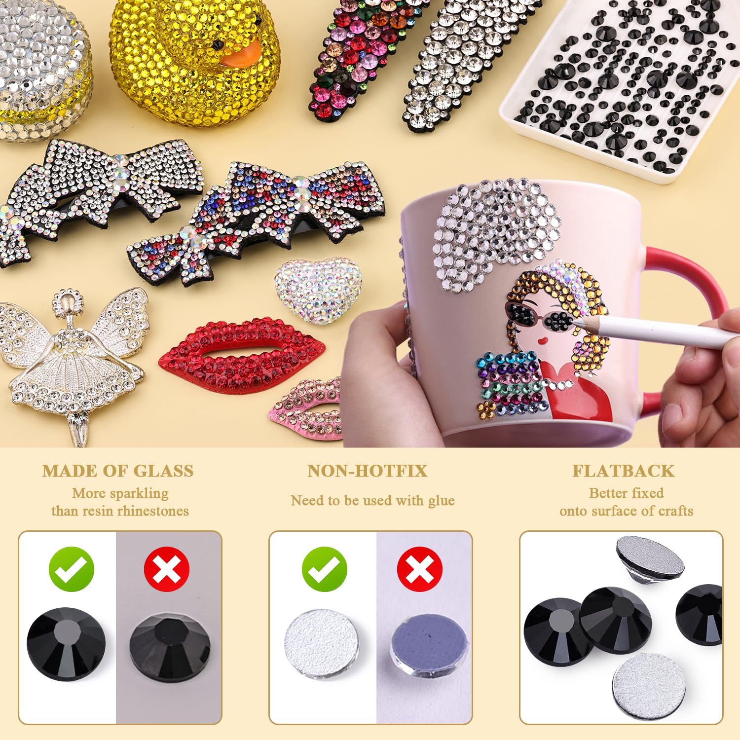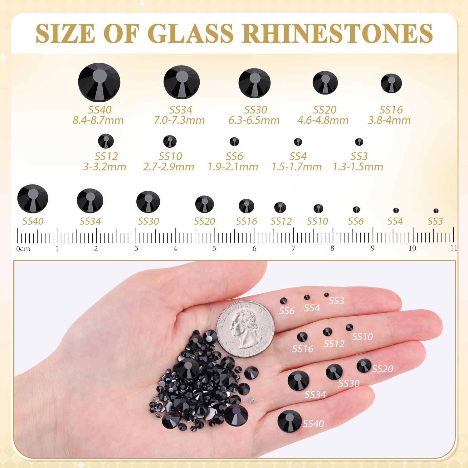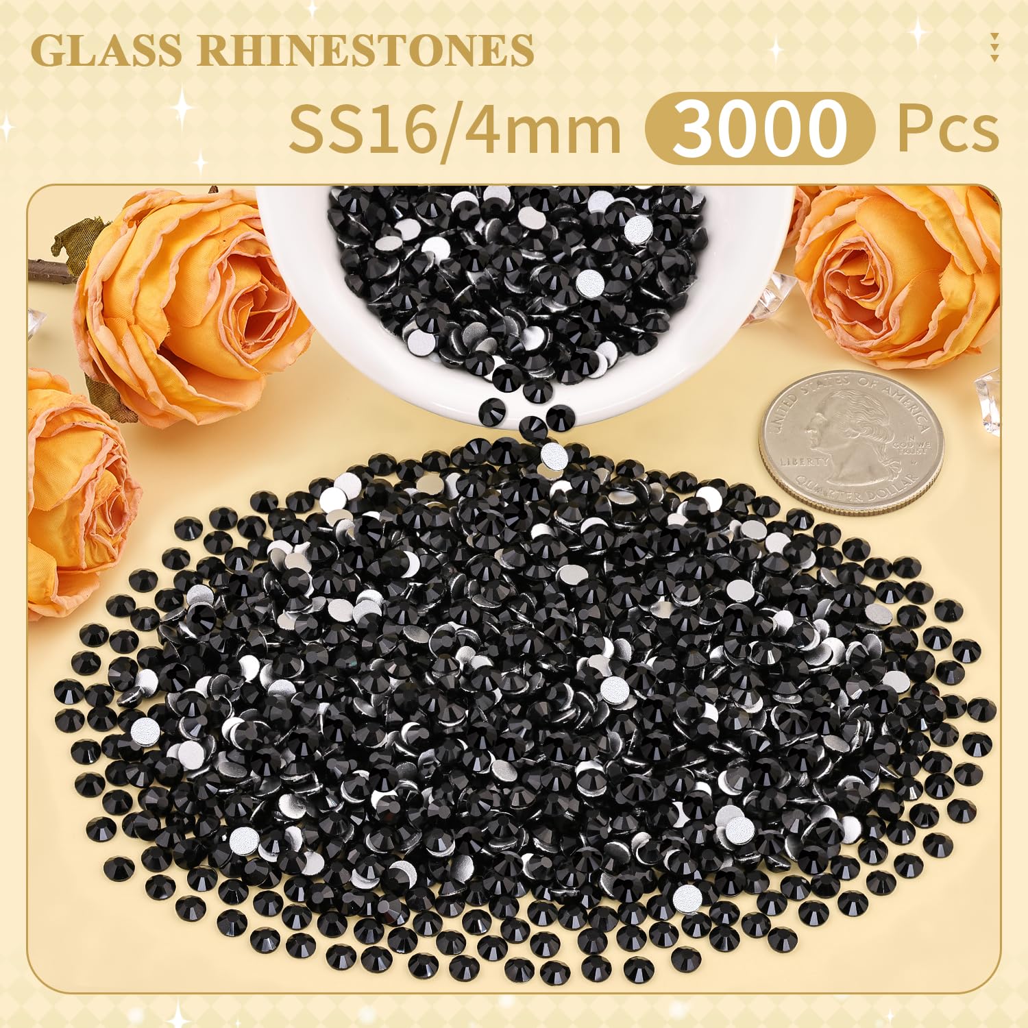 💎WHAT WILL YOU GET -- The package contains about 3000 pcs SS16 (0.16") blingbling glass rhinestones (Jet Black). The large amount will support you to fulfill a number of your wonderful DIY decoration ideas. Additionally, 1 tweezers and 1 pickup pen are included to easily pick up glittering gems.