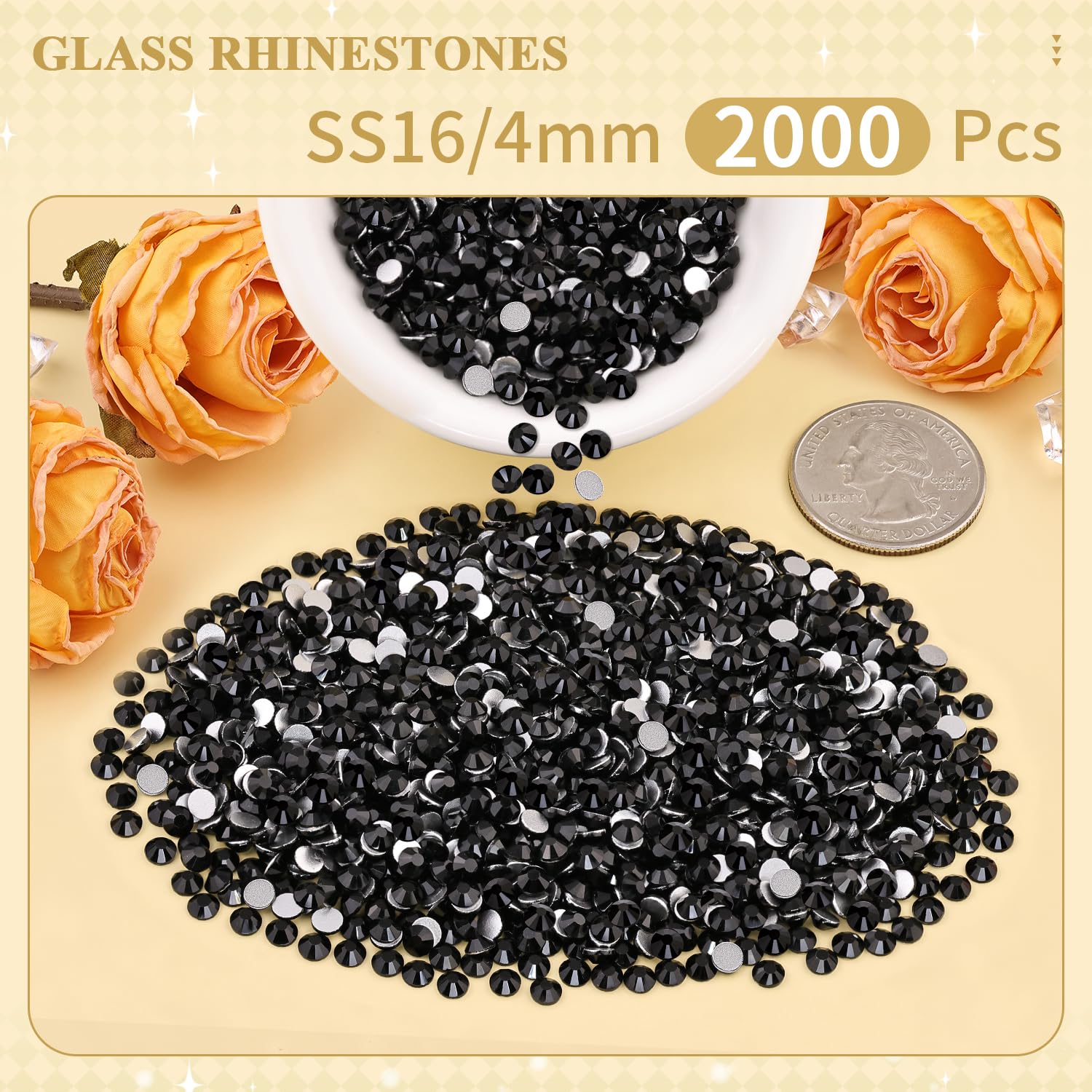 💎WHAT WILL YOU GET -- The package contains about 2000 pcs SS16 (0.16") blingbling glass rhinestones (Jet Black). The large amount will support you to fulfill a number of your wonderful DIY decoration ideas.