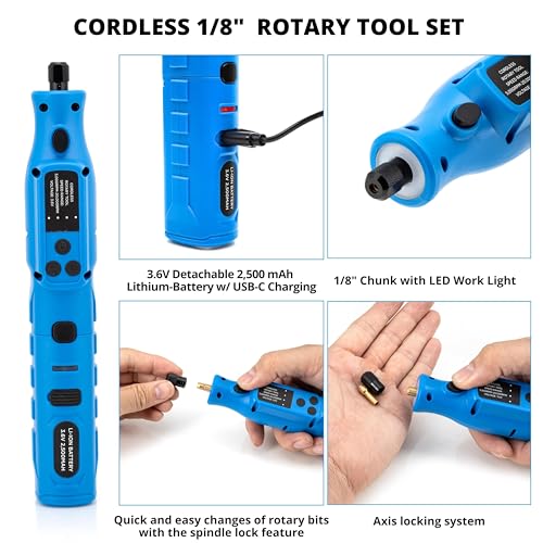 NEIKO 10581A Cordless Rotary Tool Kit, 46 Piece 3.6V Electric Engraving Pen, 1/8" Collet Rechargeable Mini Grinder, Handheld Mini Sander, 44pc Power Rotary Tools Accessory kit, Quick Change