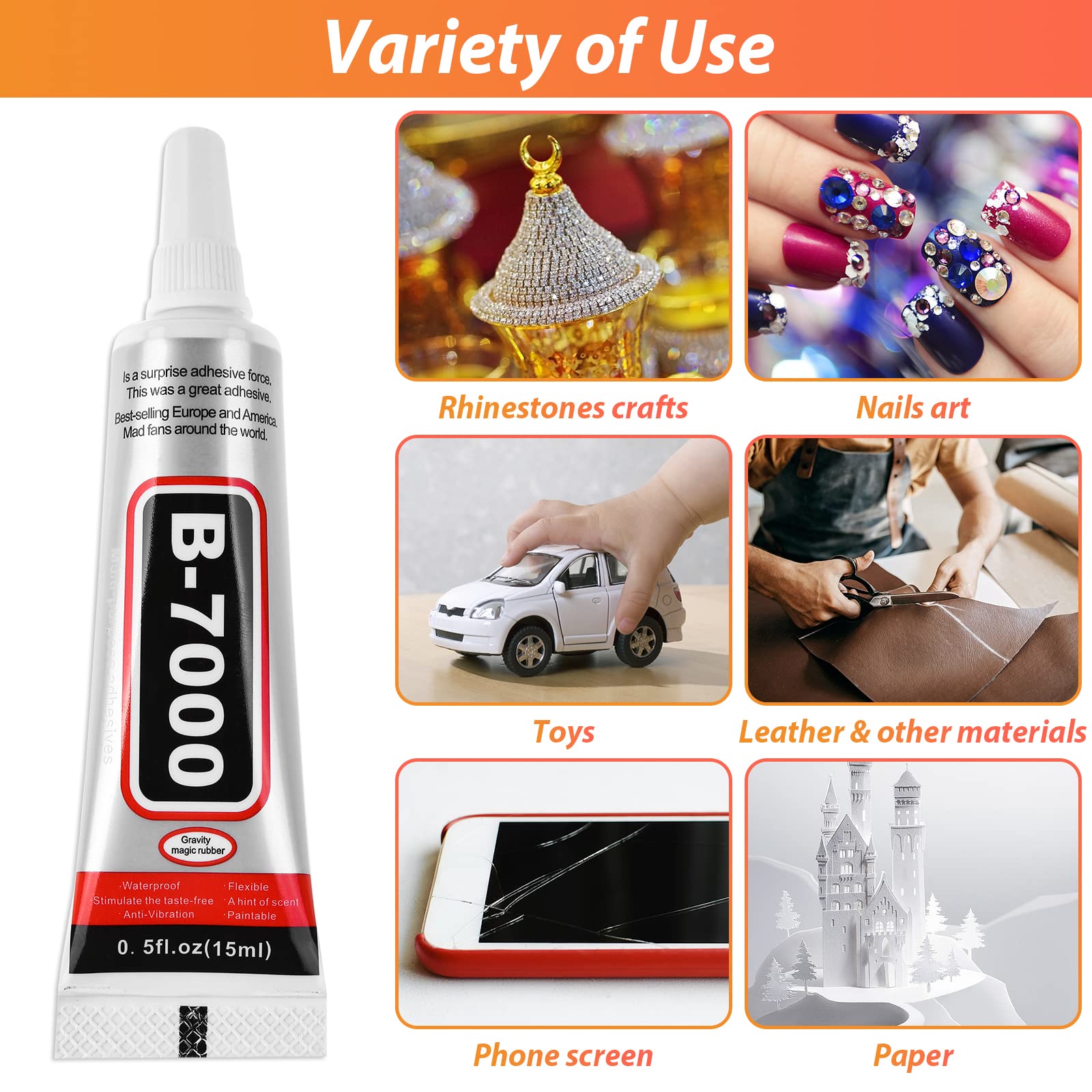 ๐๐ฎ๐ฅ๐ญ๐ข๐ฉ๐ฎ๐ซ๐ฉ๐จ๐ฌ๐ ๐๐๐๐๐ ๐ฃ๐๐ฐ๐๐ฅ๐ซ๐ฒ ๐ ๐ฅ๐ฎ๐ B-7000 clear glue perfect for rhinestone, phone repair, tablet, jewelry decoration, toys, metal, glass, rubber, fabric, paper, ceramics, wood, cloth, textile, nylon, PVC, leather, and other materials. Unique designed with precision tip, clear adhesive glue in fine, precise, controlled with mess-free manners. The craft glue is high elasticity, will not break after stretching by 900%, takes 6-10 minutes to dry, total drying takes 24 hours.