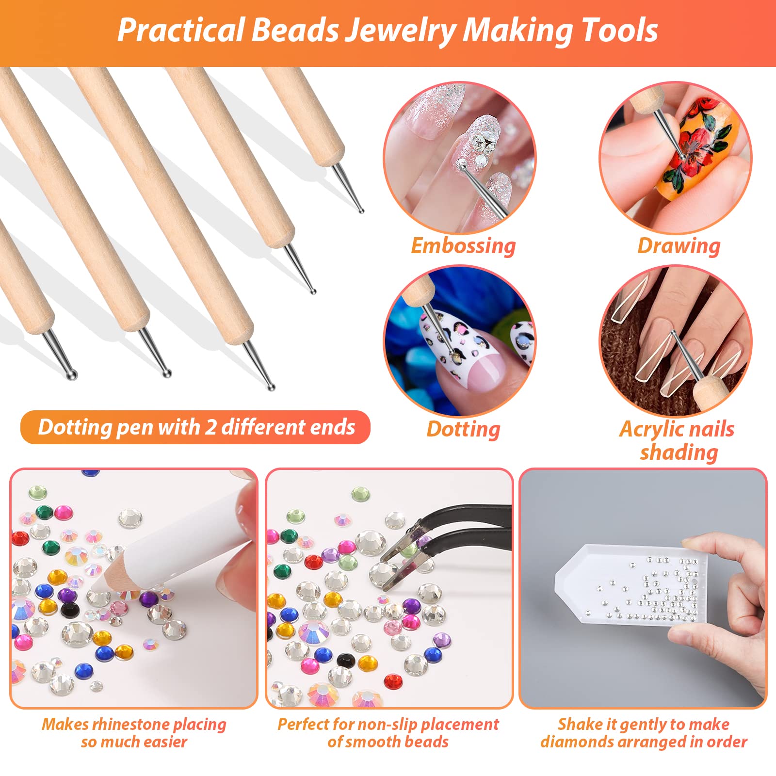 ๐๐ซ๐๐๐ญ๐ข๐๐๐ฅ ๐๐๐ข๐ฅ ๐๐ซ๐ญ ๐๐จ๐ญ๐ญ๐ข๐ง๐ ๐๐จ๐จ๐ฅ๐ฌ ๐๐๐ญ Come with 5 different sizes art dotting stylus tool (0.5/ 1.0/ 2.0/ 2.5/ 3.0mm), stainless steel metal balls and plastic handle, every dotting pen with 2 different ends. Suitable for various crafts and meeting all your needs. For nail art, embossing, making dots, natural nails, false nails, acrylic nails shading, and precision writing, etc. Perfect for professional or personal use, great for both professional nail specialists or nail art learners.