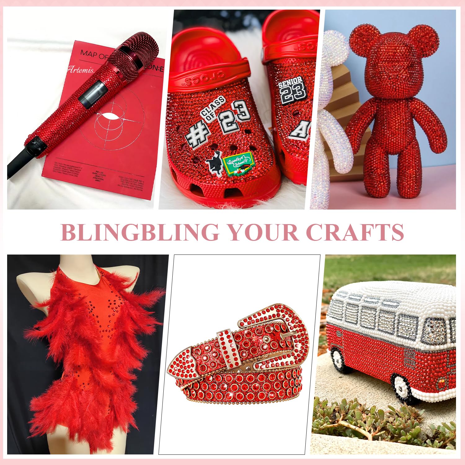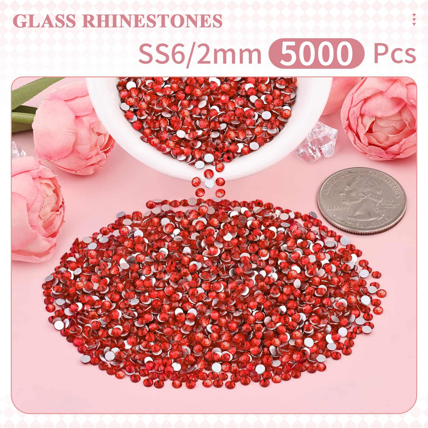 💎WHAT WILL YOU GET -- The package contains about 5000 pcs SS6 (0.08") blingbling glass rhinestones (Light Red/Light Siam). The large amount will support you to fulfill a number of wonderful DIY decoration ideas.