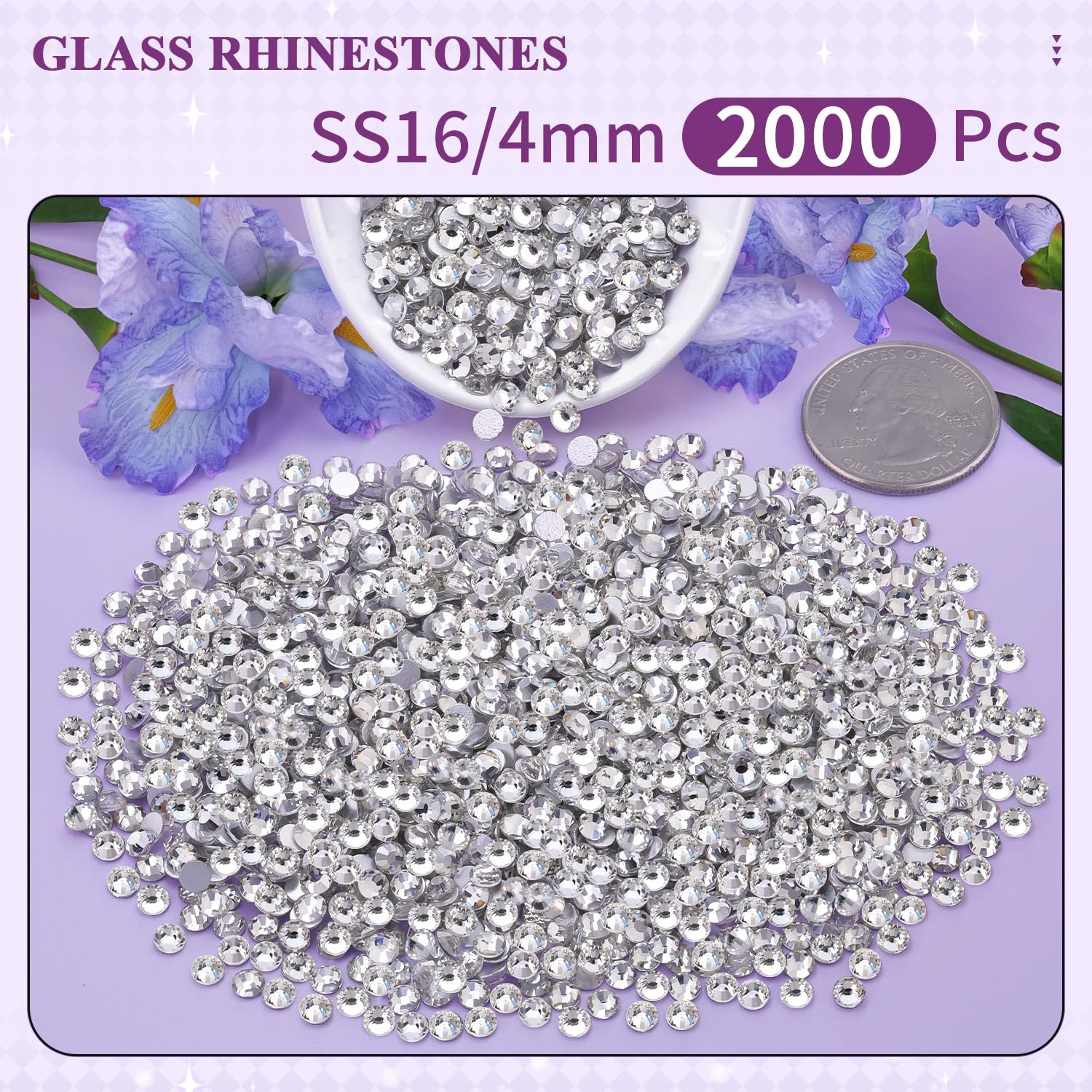 💎WHAT WILL YOU GET -- The package contains about 2000 pcs SS16 (0.16") blingbling glass rhinestones (Clear). The large amount will support you to fulfill a number of your wonderful DIY decoration ideas.