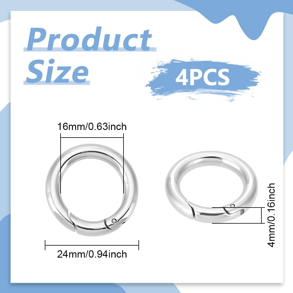 Size & Quantity: about 24mm in diameter, 4mm thick(6 Gauge), 16mm inner diameter, 4pcs spring gate rings in box, packaged well. Great for DIY your special & unique jewellery, excellent for suspending small items.