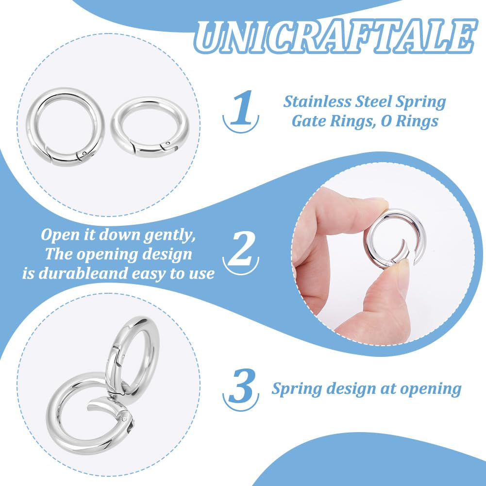Easy To Use: These stainless steel spring gate rings are a convenient substitution for other types of clasps. The closure of spring gate ring clasps is very easy to push and fit for most jump rings and chain.