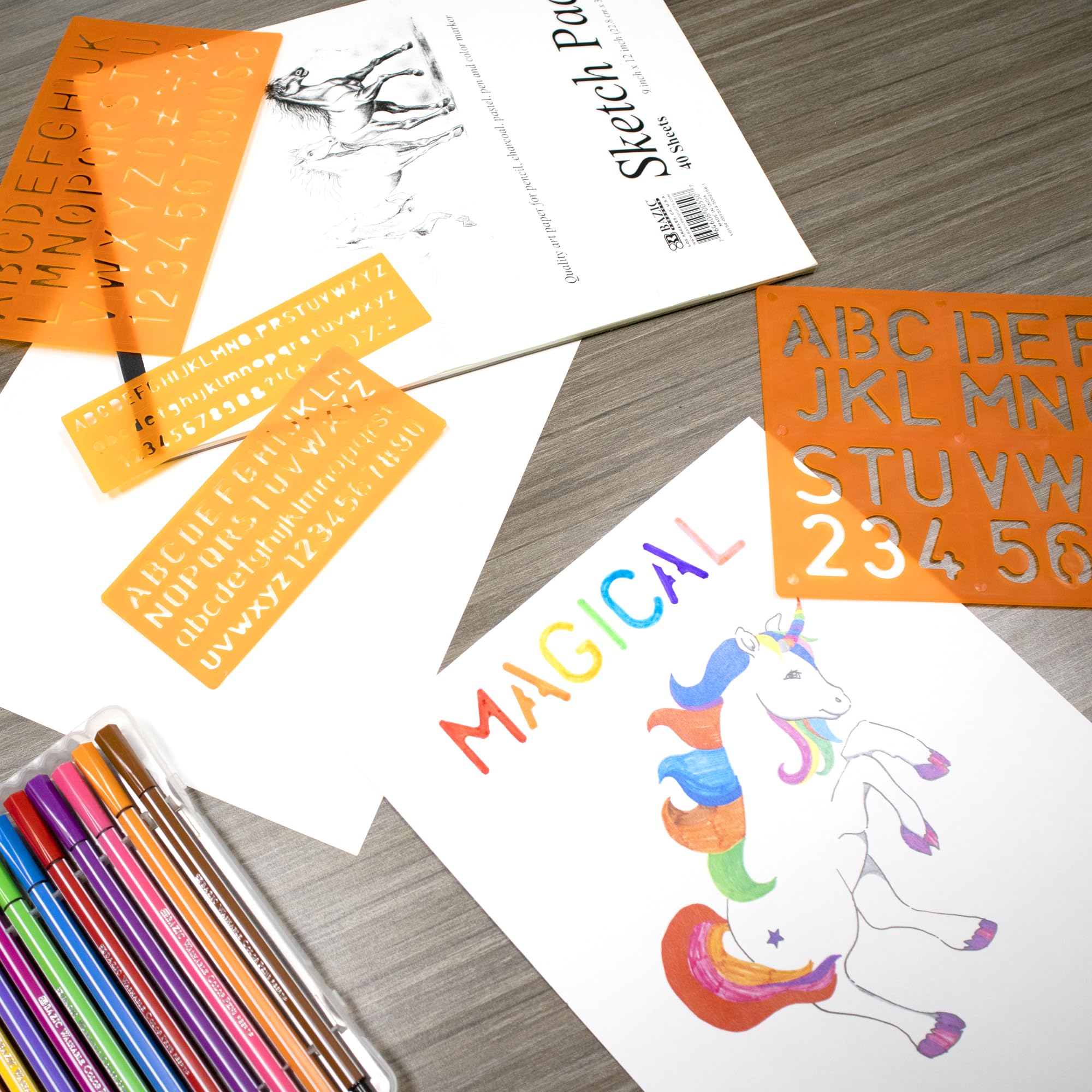 1 x Letter and number stencil sets - sizes 8, 10, 20, 30mm - Assorted colors