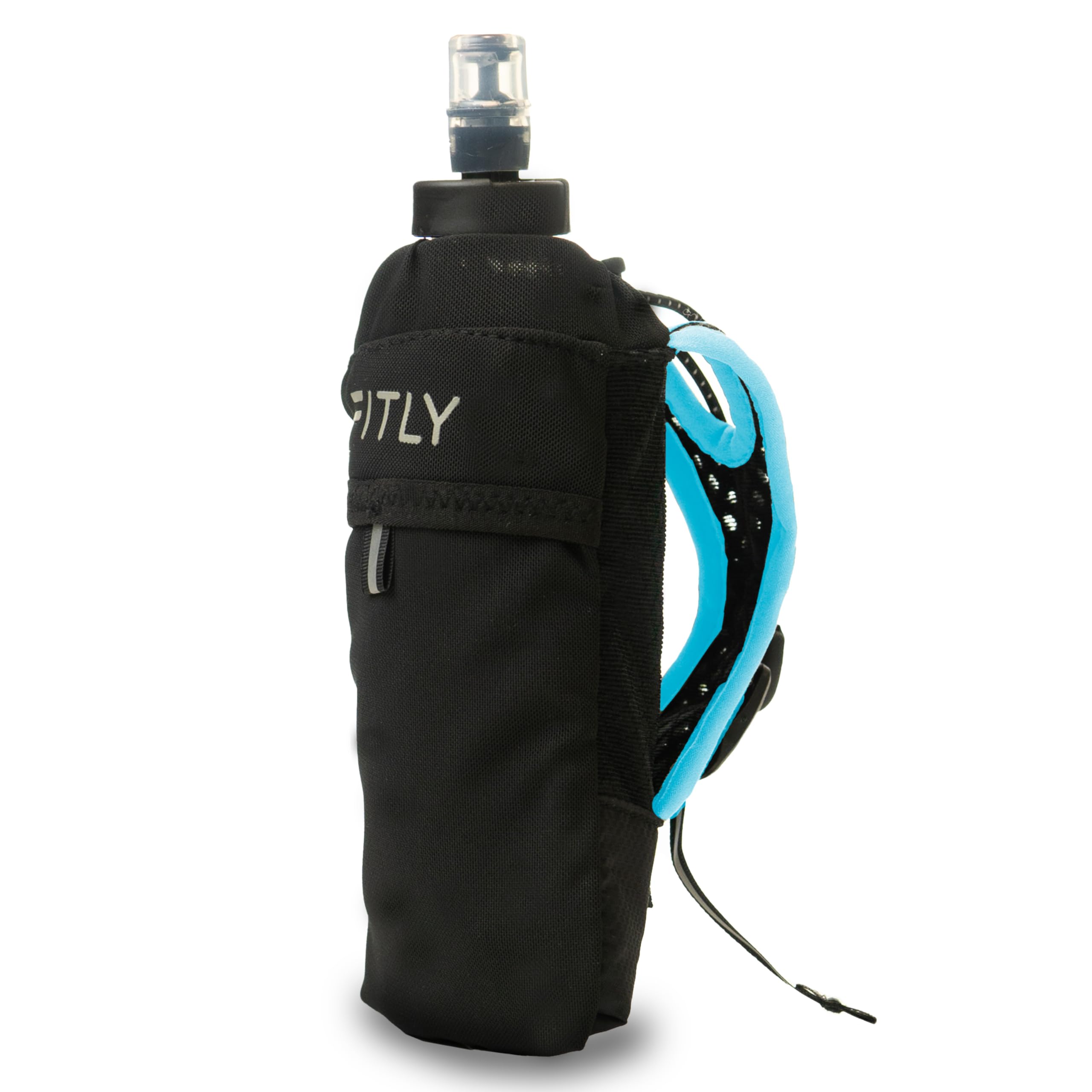 CONVENIENT POCKET STORAGE: The FITLY handheld water bottle features a stretchy pocket that offers convenient storage for small personal items like keys, phones, or cards. Keep your essentials within reach without the need for additional accessories or pockets weighing you down.