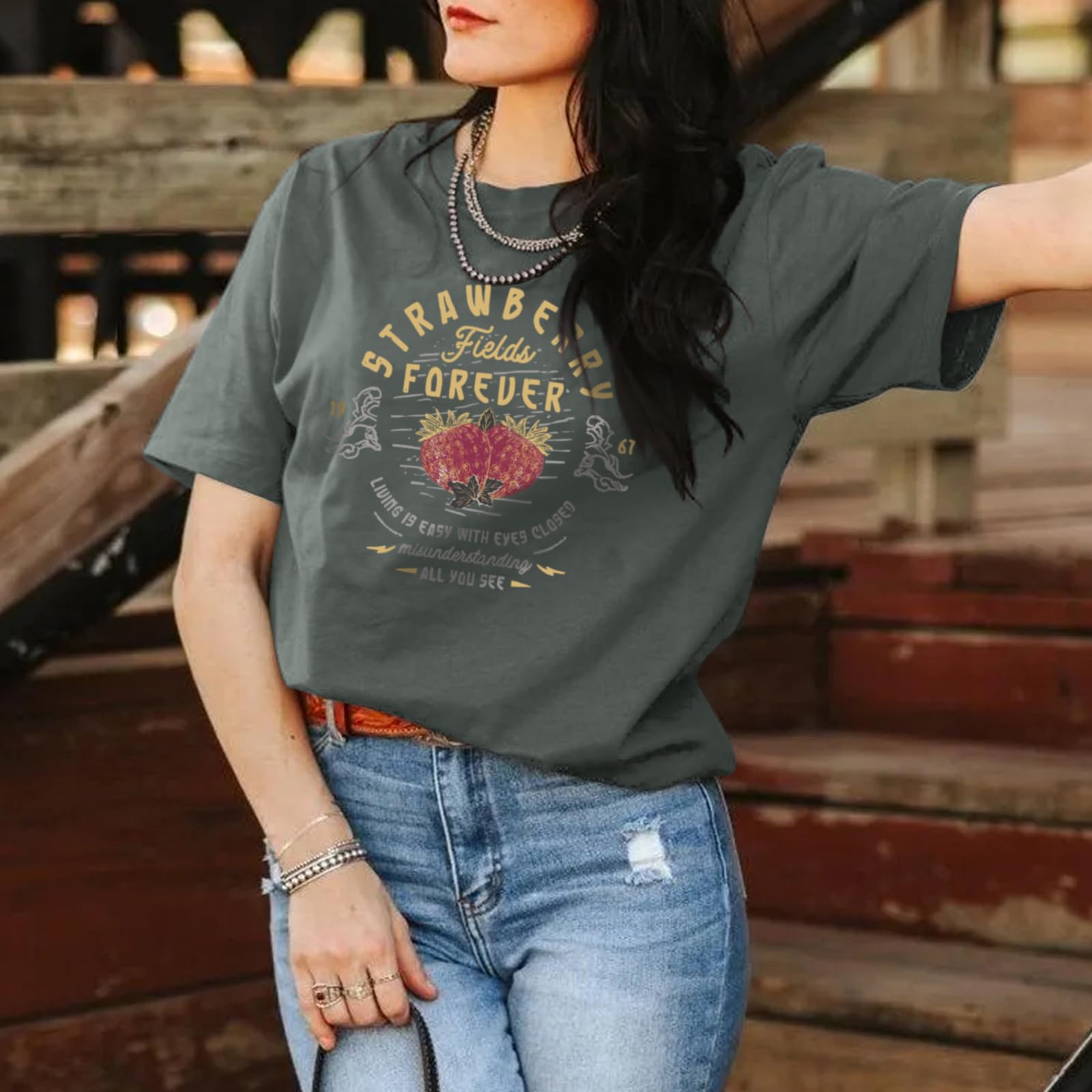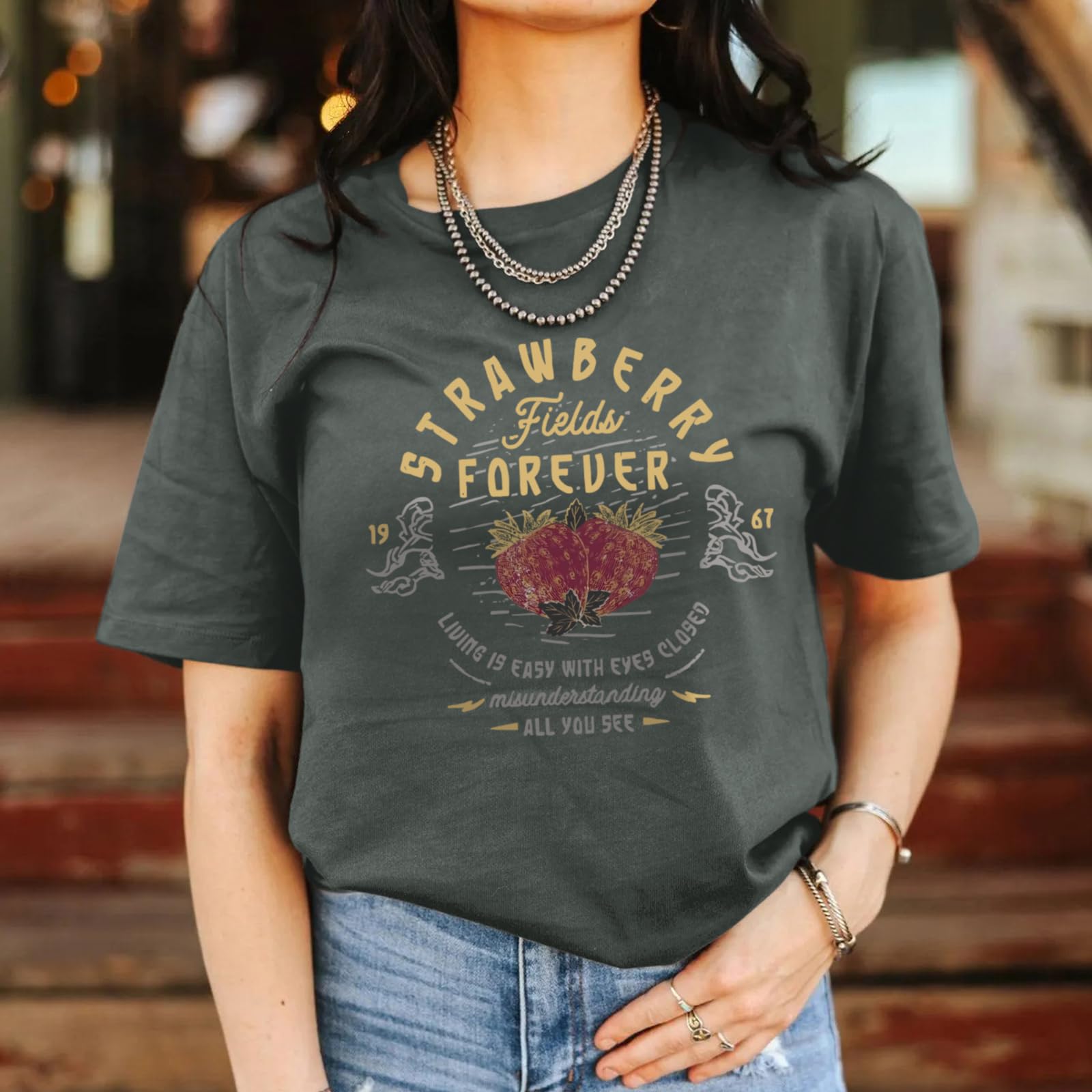 Description Step into the spotlight with our vintage rock tees for women—a blend of charm and cozy comfort! Crafted from a soft, slightly stretchy cotton blend, these tees feature slightly dropped shoulders for a relaxed, retro-inspired fit that flatters every body type. Whether you’re channeling the raw energy of 60s 70s 80s 90s rock band t-shirts or embracing the free-spirited vibe of country concert tops for women, this rock band tshirts is your ultimate rock and roll outfit staple. Celebrate music history with bold vintage rock and roll t-shirts adorned with eye-catching prints, including our signature unique strawberry graphic. Pair these vintage graphic tees for women with ripped jeans, leather jackets, or flowy skirts for a look that screams cool in any season. Dress them up for country concerts, beer parties, or weekend hangouts, or keep it casual for shopping trips and cozy wine nights. Our vintage band tees for women are guaranteed to ignite smiles! Perfect for music-loving friends, moms, or classmates, they shine at birthdays, Valentine’s Day, graduations, or as a “just because” surprise. Who wouldn’t adore a strawberry shirt for women that blends retro flair with modern comfort?