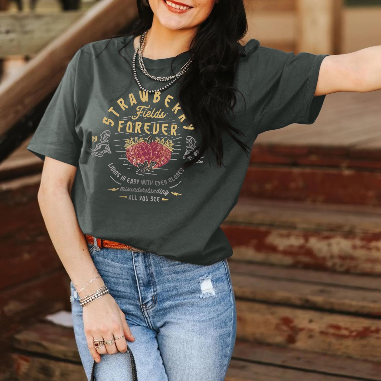 A Heart-Warming Present: Our country music vintage strawberry print t-shirts will make everyone who receives it brighten their eyes for your friends, classmates and family at concerts, valentine's day, mother's day, birthdays, anniversaries, graduation season and more