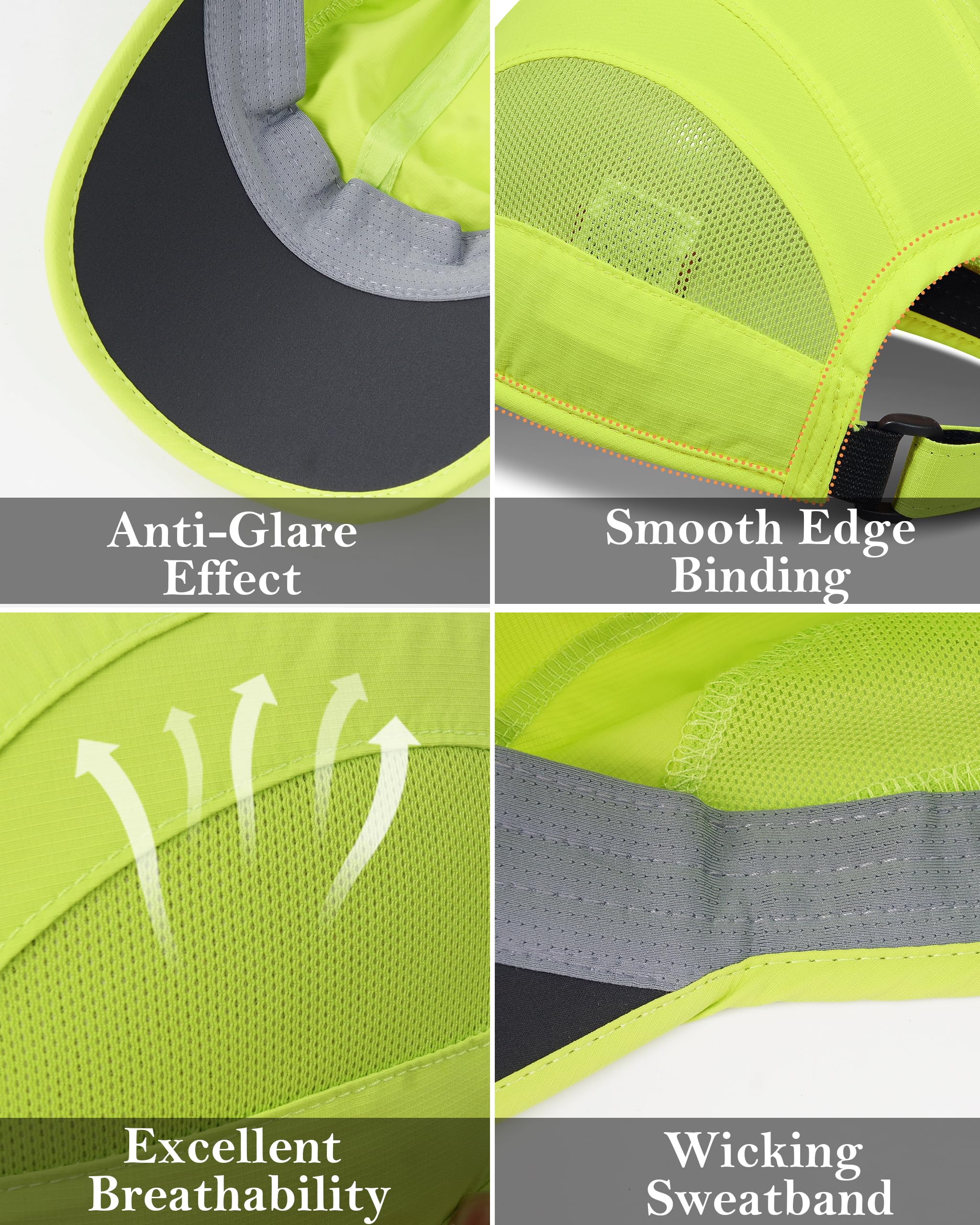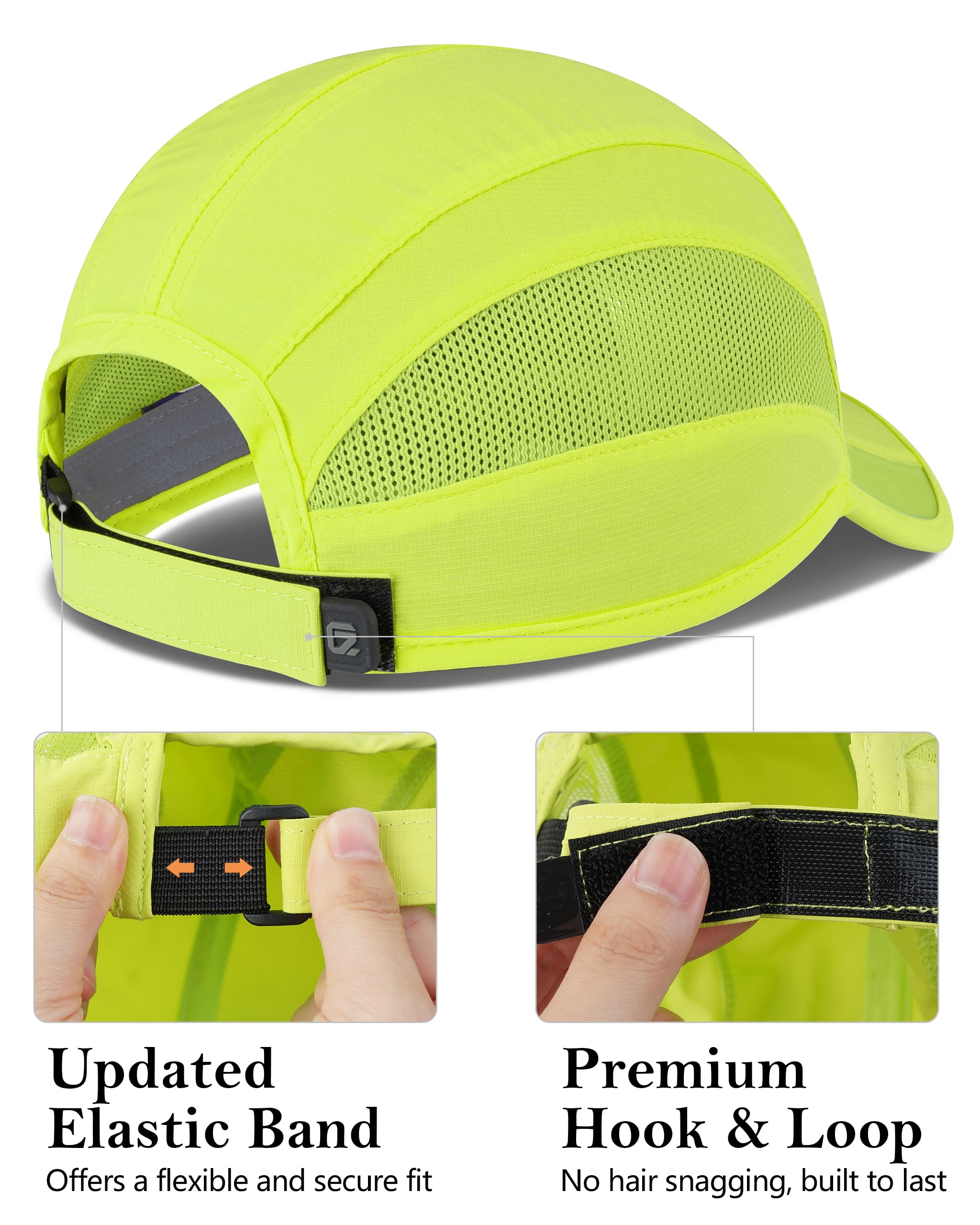 Quick Drying Running Hat: This GADIEMKENSD hat is made of breathable fabrics, even if the hat is wet with sweat or light rain, it will dry quickly. Built in sweatband removes sweat from eyes and face. The two-side mesh design allows for moisture and heat to easily escape these caps, which not only keeps your noggin cool, but you’ll also stay dry
