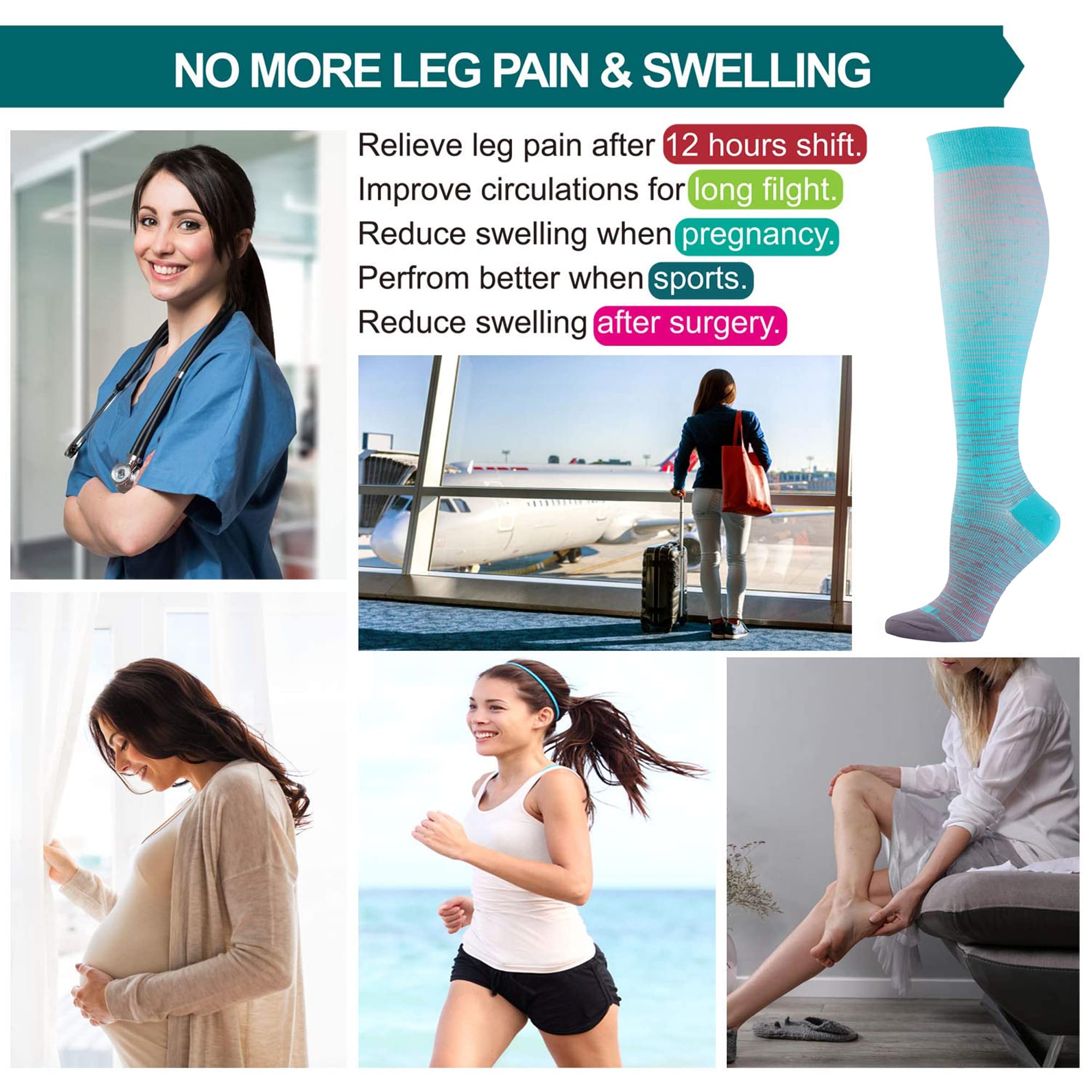 PERFECT MEDICAL GRADE COMPRESSION STOCKING - Doing what they’re supposed to do. Get your blood circulating in style! Increase and stimulates blood flow. Helping prevent varicose veins, calf compression and shin splints. Prevent blood clots after surgery. Provides significant relief for aching legs, calf, ankles and feet. Great replacement for Dr. prescribed compression socks stiff varieties in black nude white colors. Get these fashionable compression socks tight in far more cost- effective.