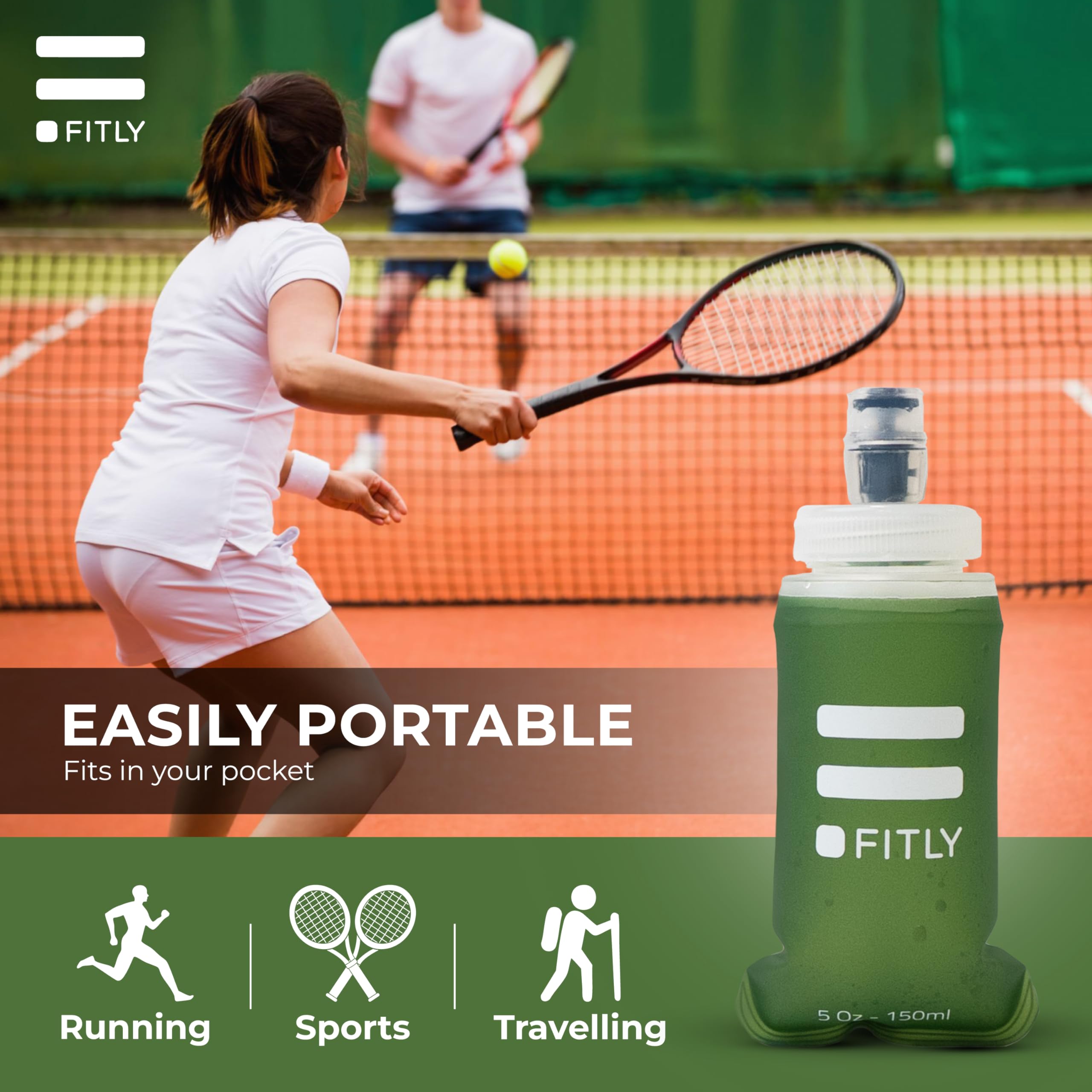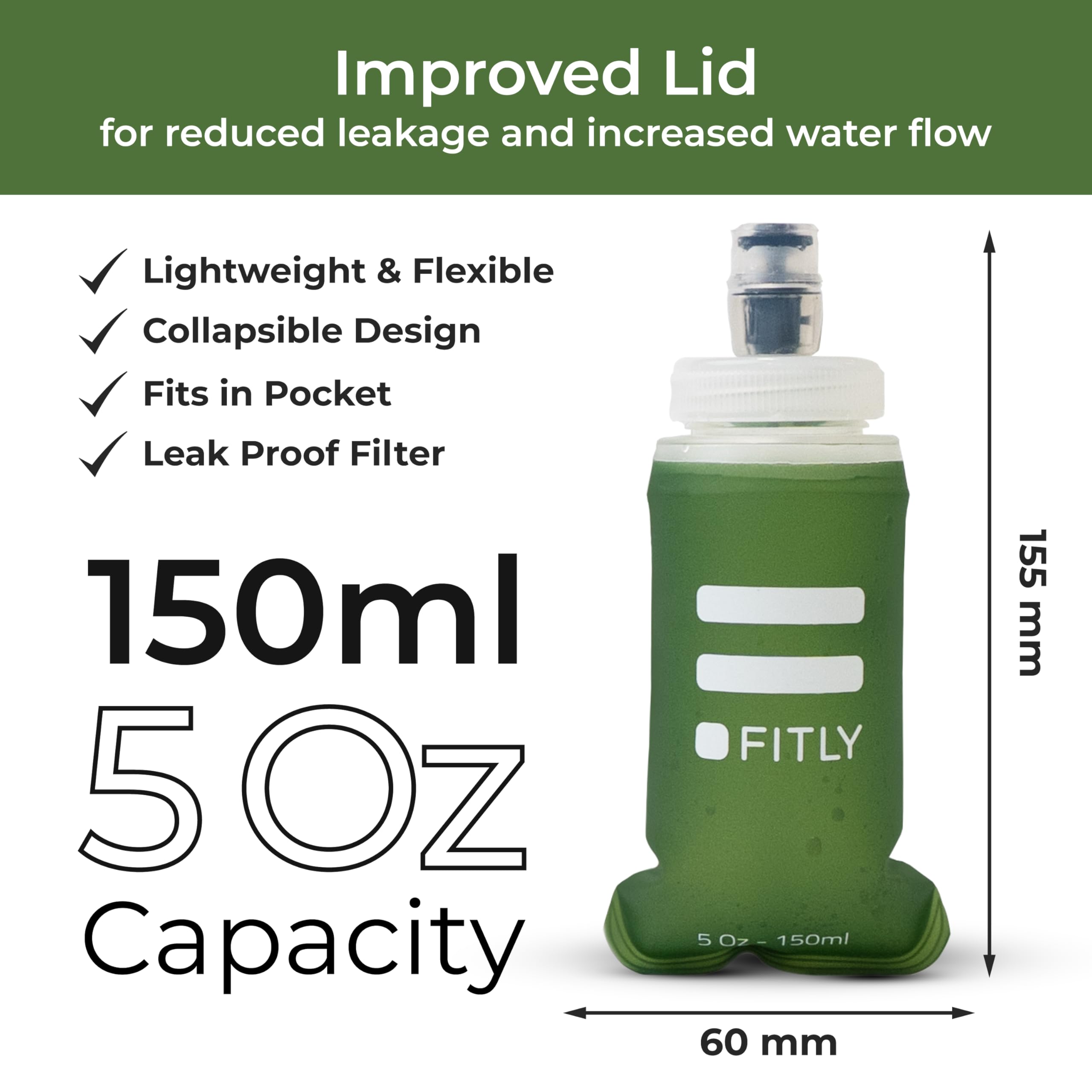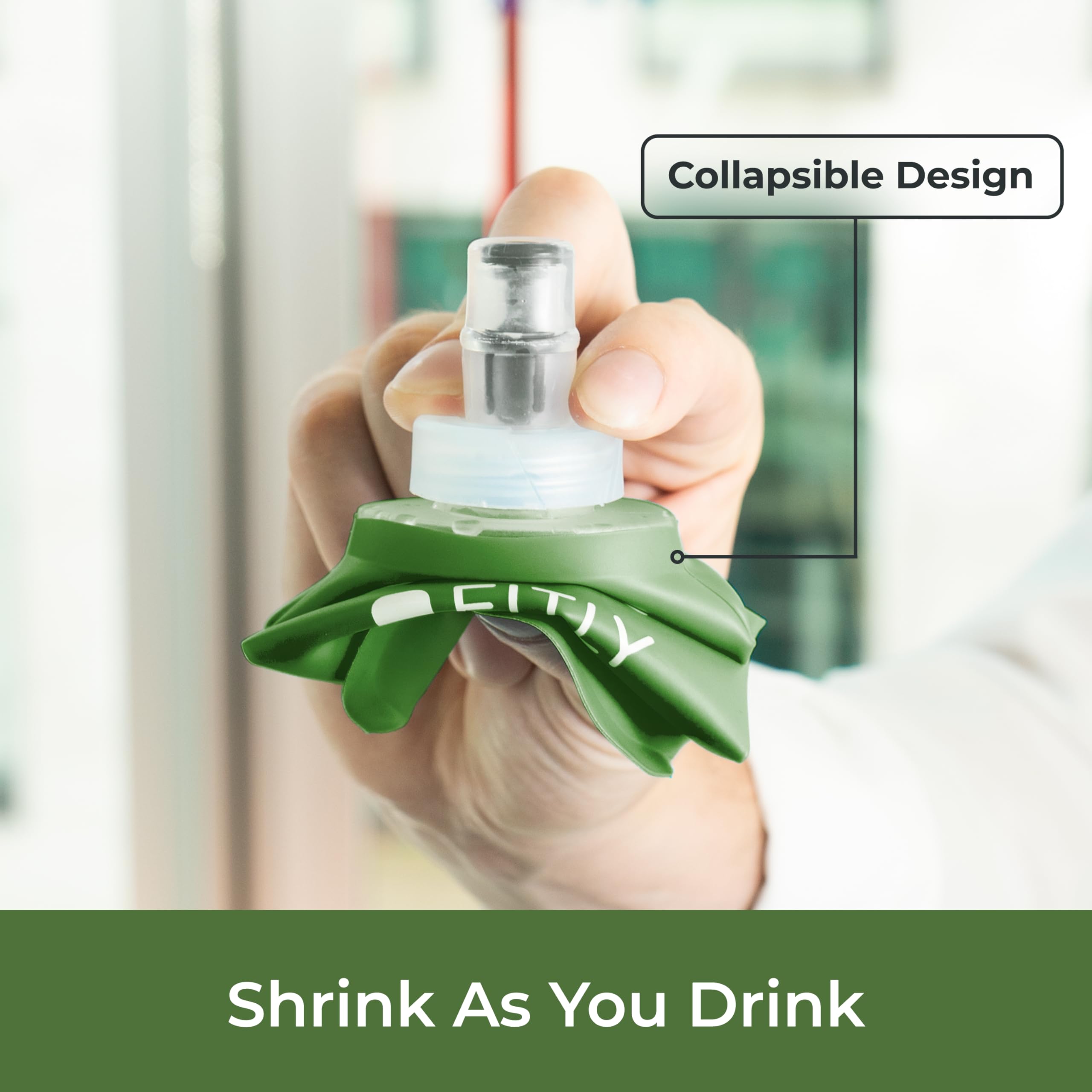 HYDRATION ON THE MOVE: Our collapsible running soft flask is a compact and eco-friendly way to stay hydrated on the move! The soft water bottle is the perfect hydration tool for active individuals. Our soft water bottles for runners shrink as you drink, taking up minimal space and won’t slosh around, making it perfect for running, hiking, skiing, or any rigorous activity. Now available in a Forest Green color option.