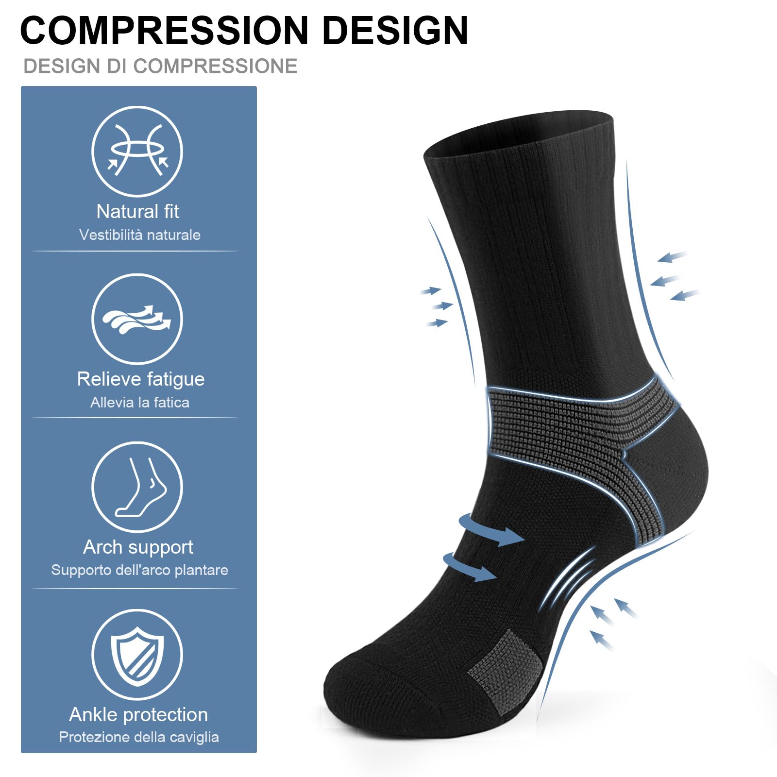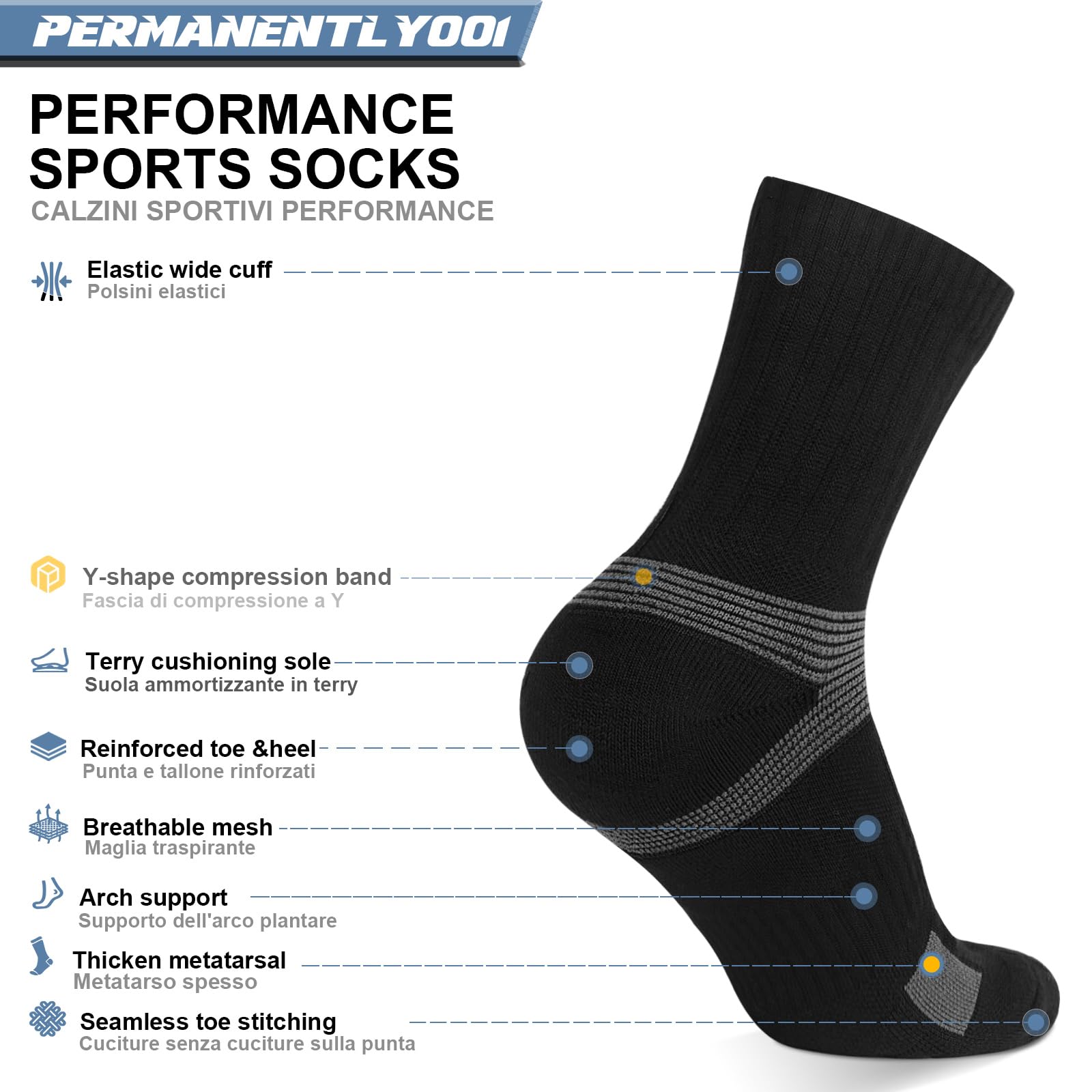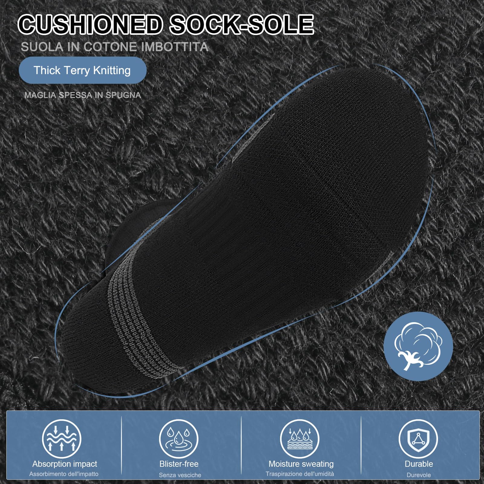 Cushioned & Anti-blister Crew Socks: The thick terry knit sole reduces pressure on the soles of the feet, absorbing impact during exercise, improving comfort and protecting the soles from injury!