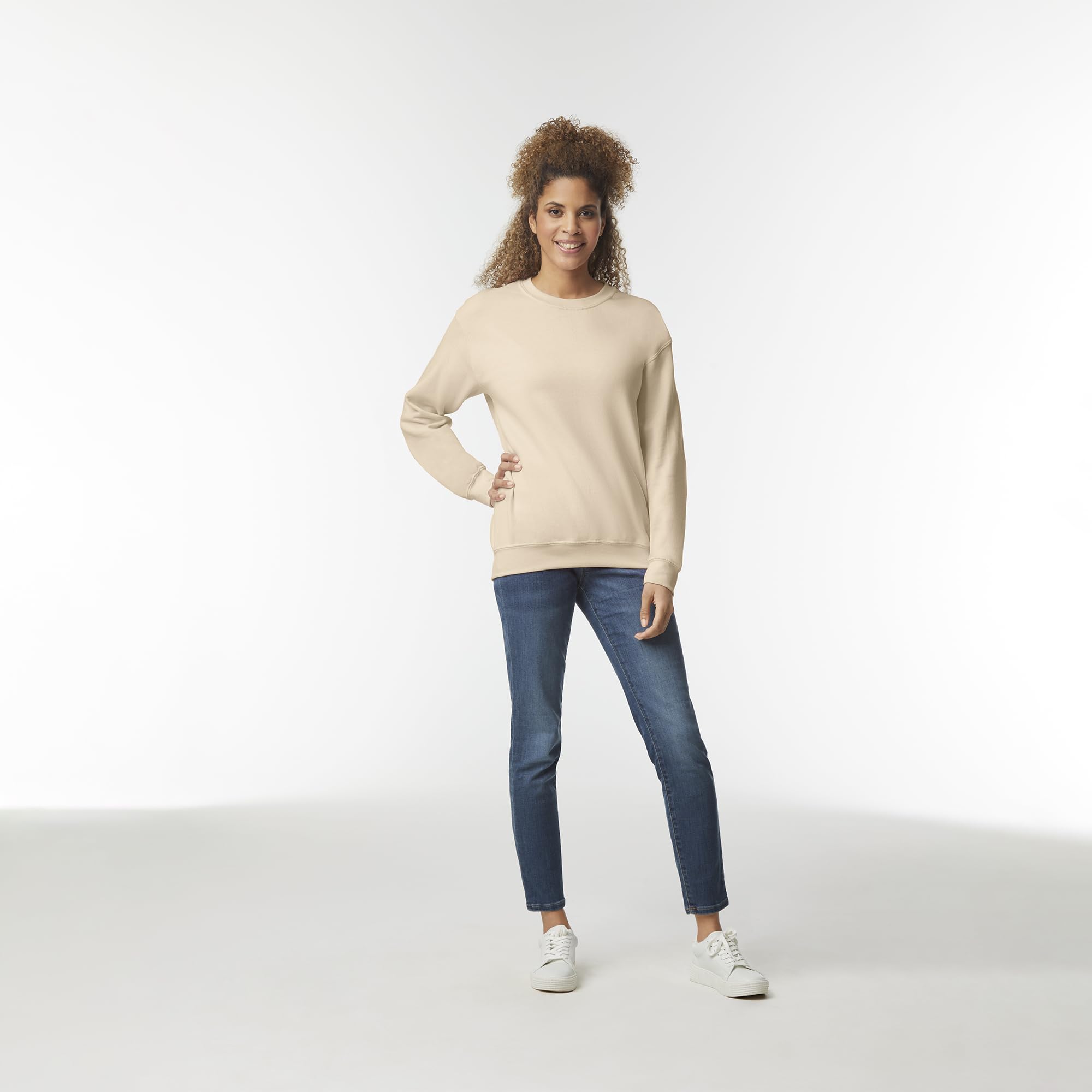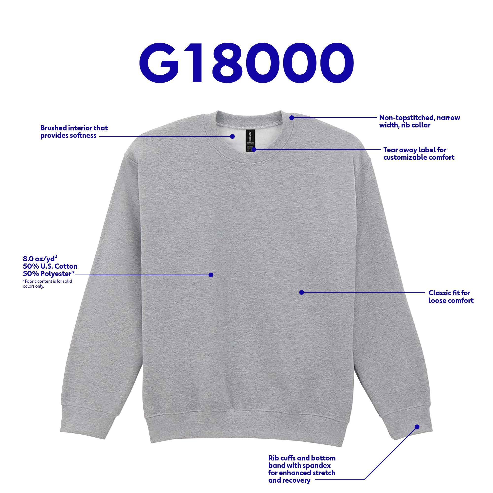 Description When soft comfort is what you seek, the Gildan Adult Fleece Crewneck Sweatshirt is what you need. Made from a 50% U.S. Cotton/50% Polyester blend, this warm 8.0 oz sq/yd classic fit style looks great and makes a great canvas for decorating. Available in 18 colors in SM - 3XL.