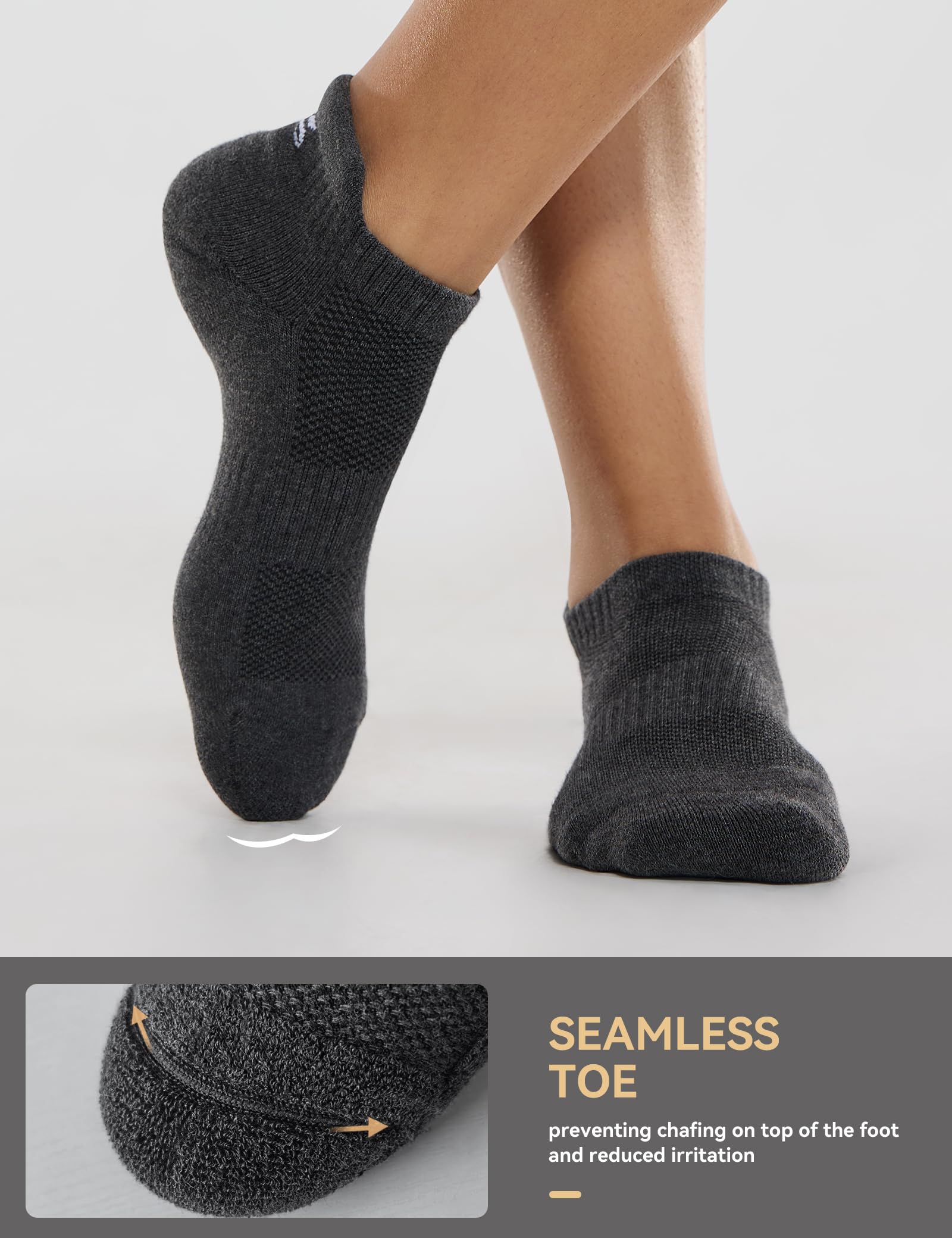 Cushioned Athletic Socks: Cushion all of the sole and reinforced toe use thicker yarns for extra durability and comfort in high-wear areas. It also designed for moisture wicking. Extra thick padding can absorb impact and to protect your feet. Mesh ventilation can cool heat and keep you feet at the perfect temperature in any condition.