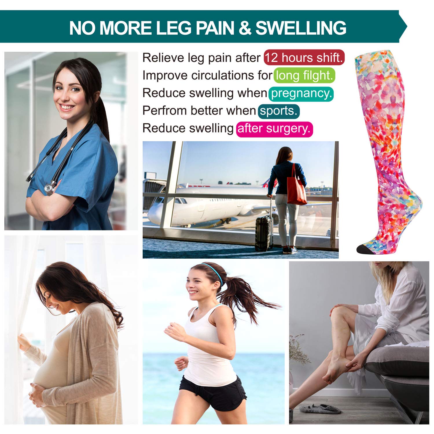 COMPRESSION SOCKS 20-30 mmHg. A Durable Compression Socks have wide variety of fun colors and designs specially for nurses, size rang cover both women and men. Double stitched with functional Fabric and knitted with seamless compression technology. Fits comfortable, easy to get on and delivers 360° support to feet and legs. Knee high long sleeves compression socks make sure the graduated support effect entire calf.