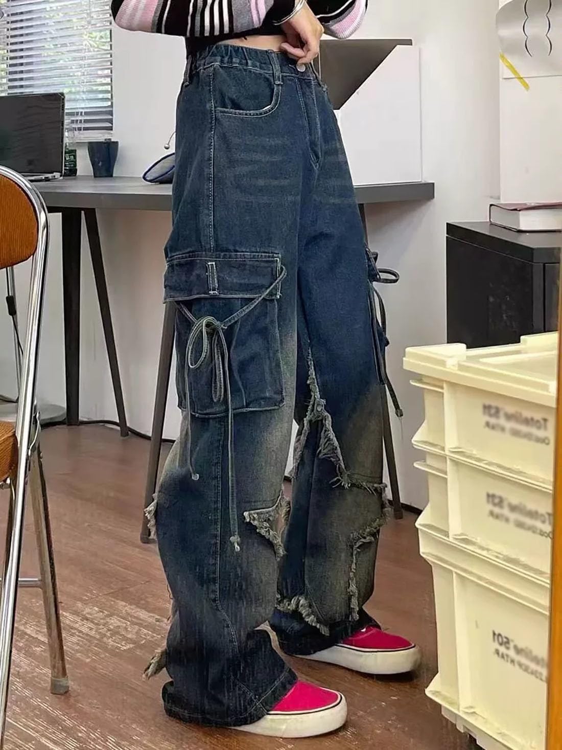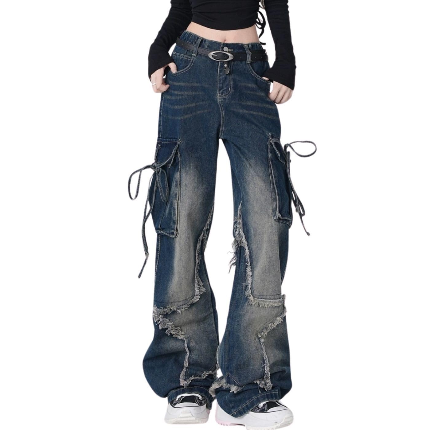 Features:Cargo jeans/baggy cargo pants for women girls/low waisted jeans for women/y2k jeans/streetwear women/girls jeans/star jeans for women