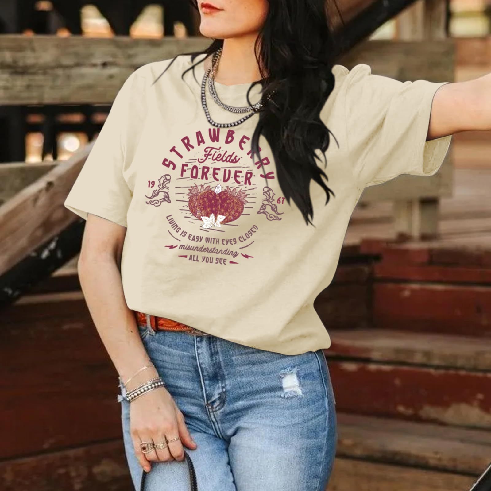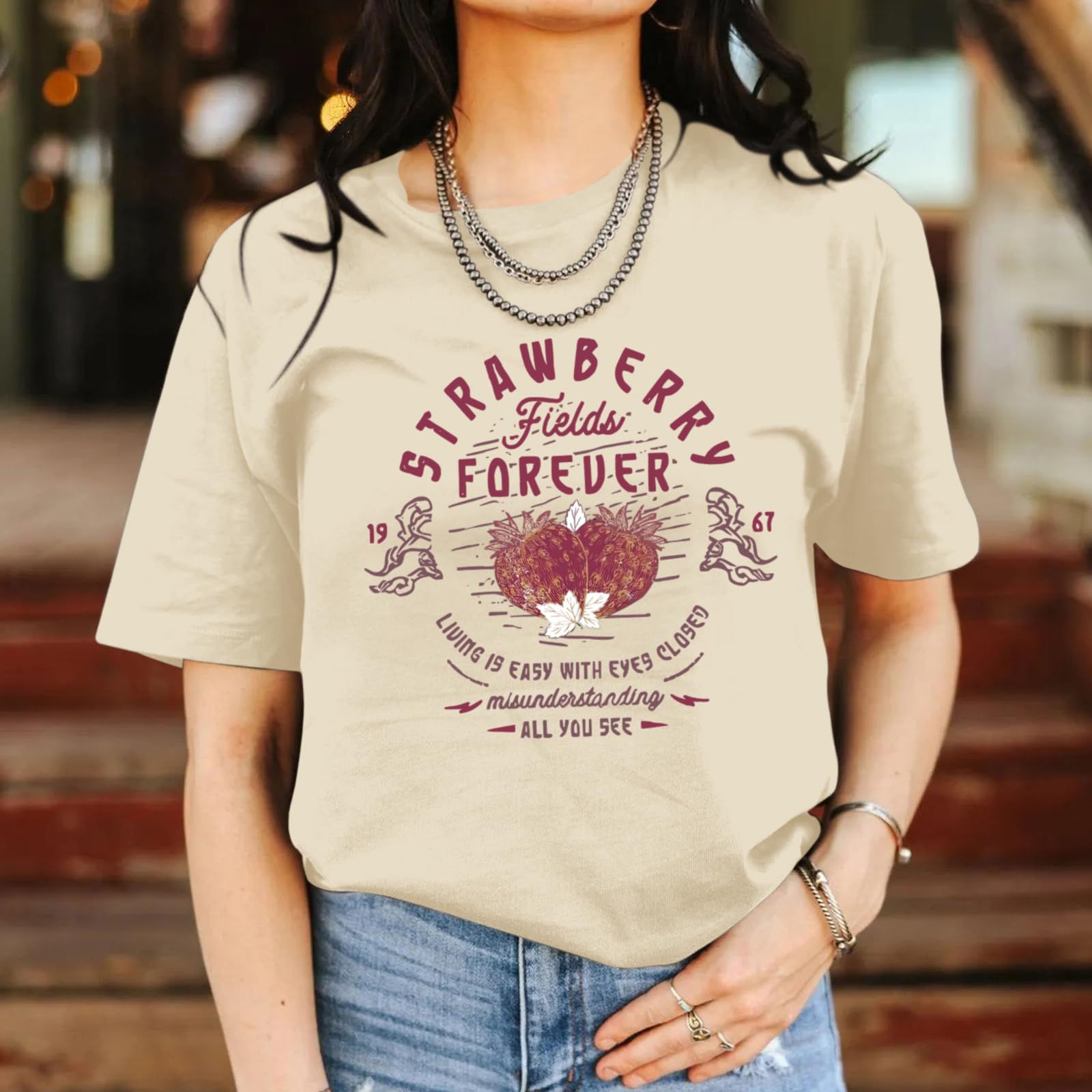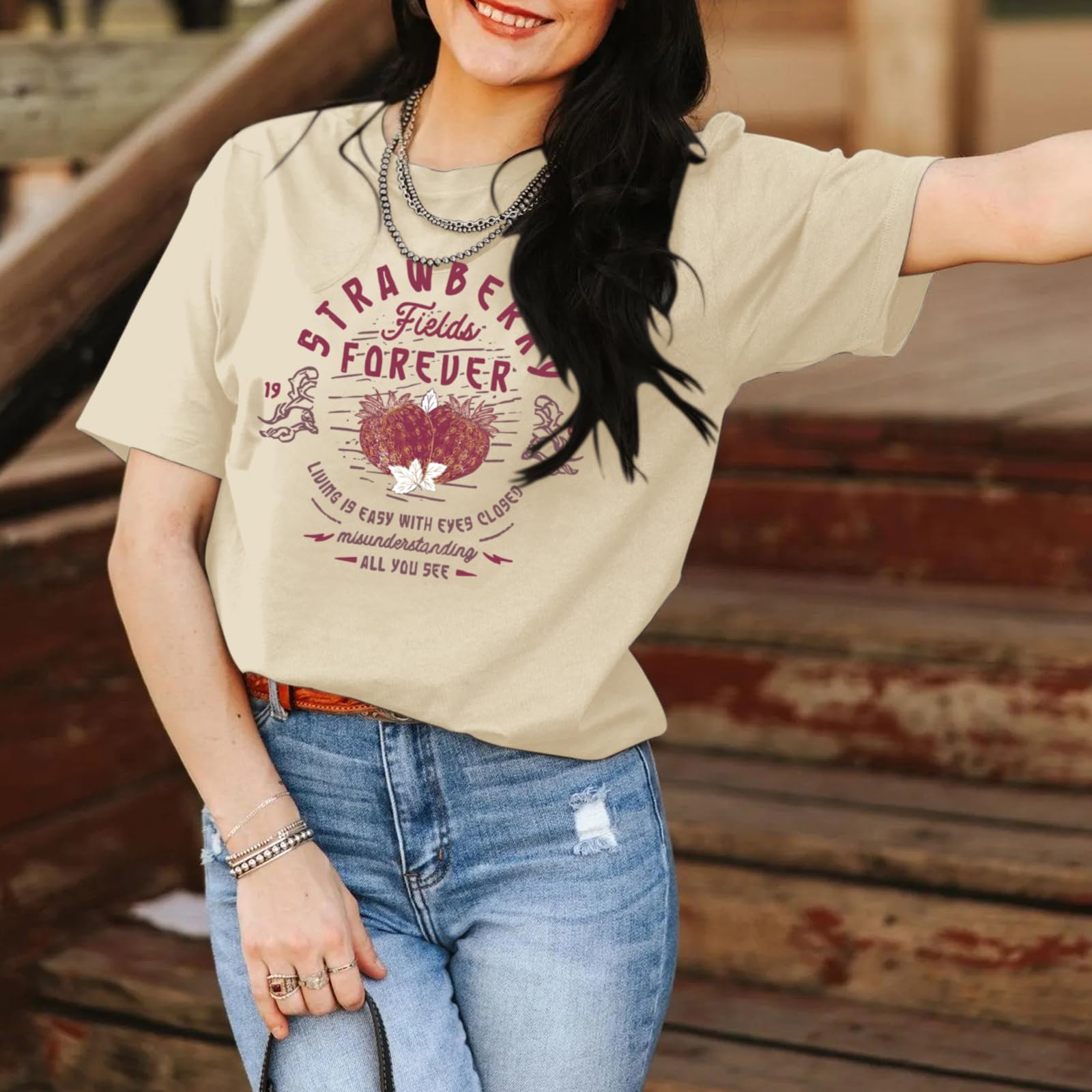 Description Step into the spotlight with our vintage rock tees for women—a blend of charm and cozy comfort! Crafted from a soft, slightly stretchy cotton blend, these tees feature slightly dropped shoulders for a relaxed, retro-inspired fit that flatters every body type. Whether you’re channeling the raw energy of 60s 70s 80s 90s rock band t-shirts or embracing the free-spirited vibe of country concert tops for women, this rock band tshirts is your ultimate rock and roll outfit staple. Celebrate music history with bold vintage rock and roll t-shirts adorned with eye-catching prints, including our signature unique strawberry graphic. Pair these vintage graphic tees for women with ripped jeans, leather jackets, or flowy skirts for a look that screams cool in any season. Dress them up for country concerts, beer parties, or weekend hangouts, or keep it casual for shopping trips and cozy wine nights. Our vintage band tees for women are guaranteed to ignite smiles! Perfect for music-loving friends, moms, or classmates, they shine at birthdays, Valentine’s Day, graduations, or as a “just because” surprise. Who wouldn’t adore a strawberry shirt for women that blends retro flair with modern comfort?