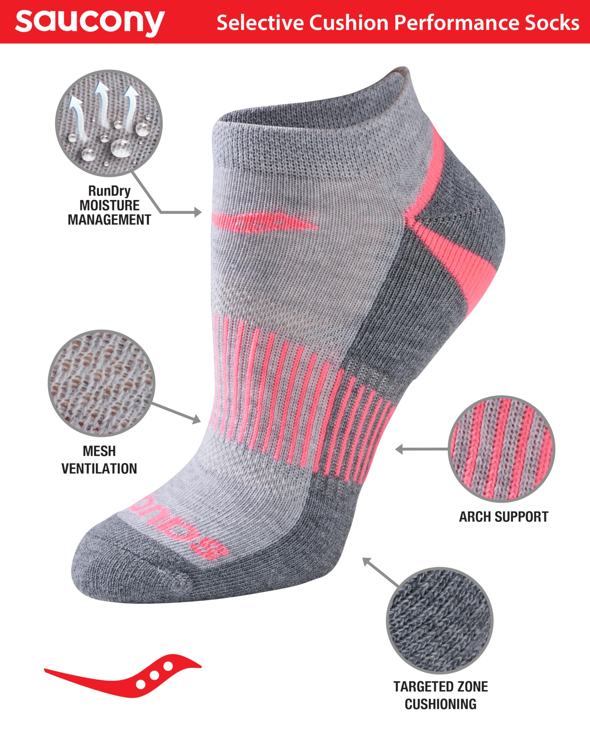 Description Saucony women's performance no show sock is a perfect combination of comfort and support. Great for the toughest training sessions. Features arch support, air mesh venting, and cushioned sole for lasting comfort. Run for Good - Saucony was founded way back in 1898. Ever since, we have been loyal to the sport, building goodness into every product and inviting millions around the world to run with us. At Saucony, we exist for runners, Runners inspire us, bringing us new idea, force us to be better, they drive our design and engineering. They keep us competitive. They keep us hungry. They keep us honest. This focus and passion fuels us as we strive to create the best running shoes and apparel on the planet. We leave work each day knowing we’ve done everything to make runners live just a little better.