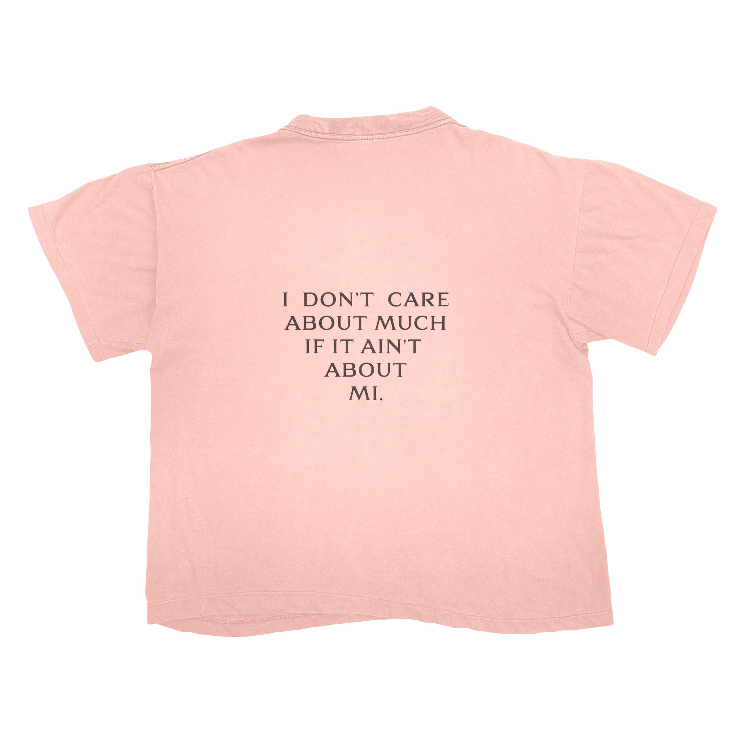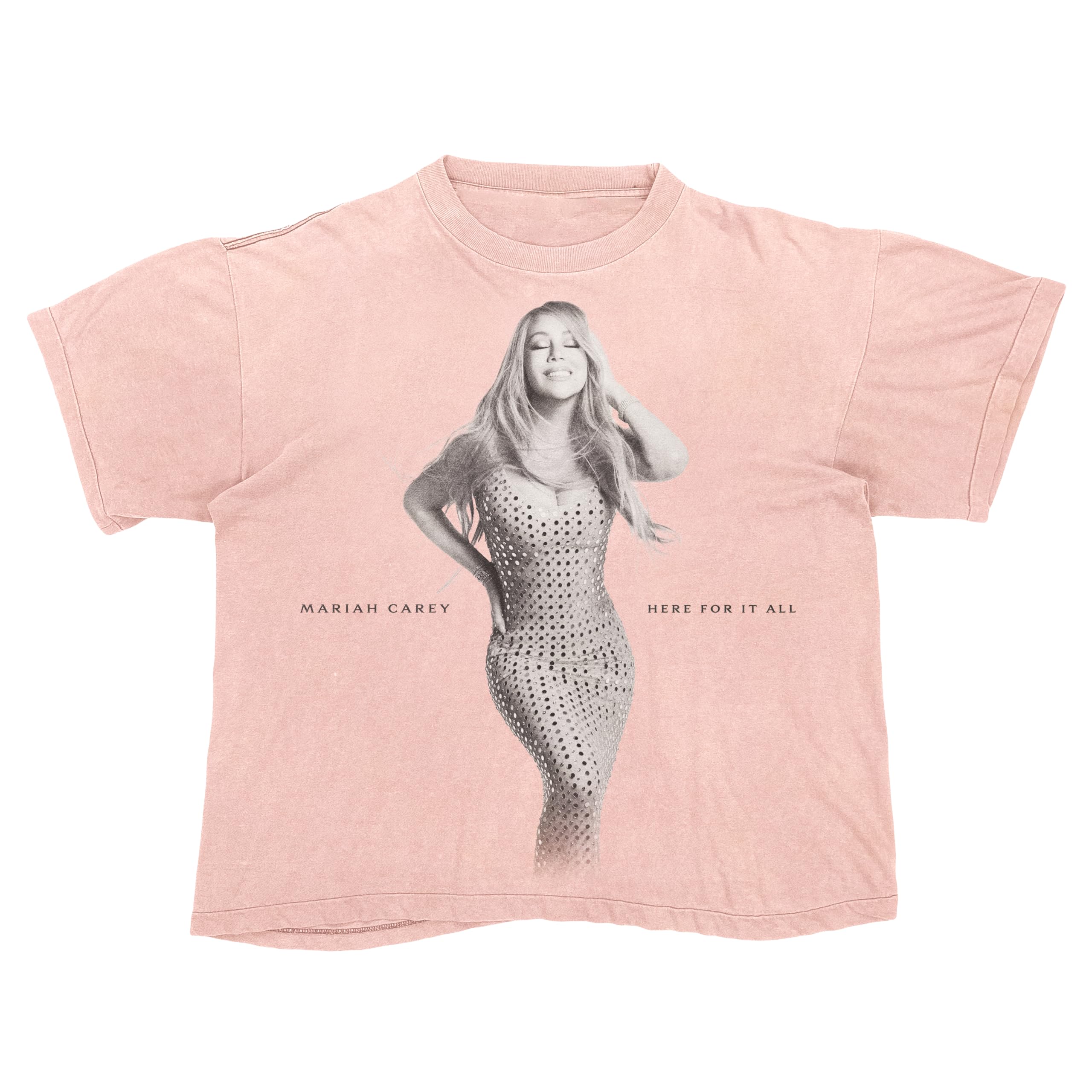 Description Official Mariah Carey Merchandise. This Amazon Exclusive Mariah Carey Here For It All Pink 'I Don't Care' T-Shirt features a jumbo photo real print of Mariah Carey on the front and screen printed logo on the back.