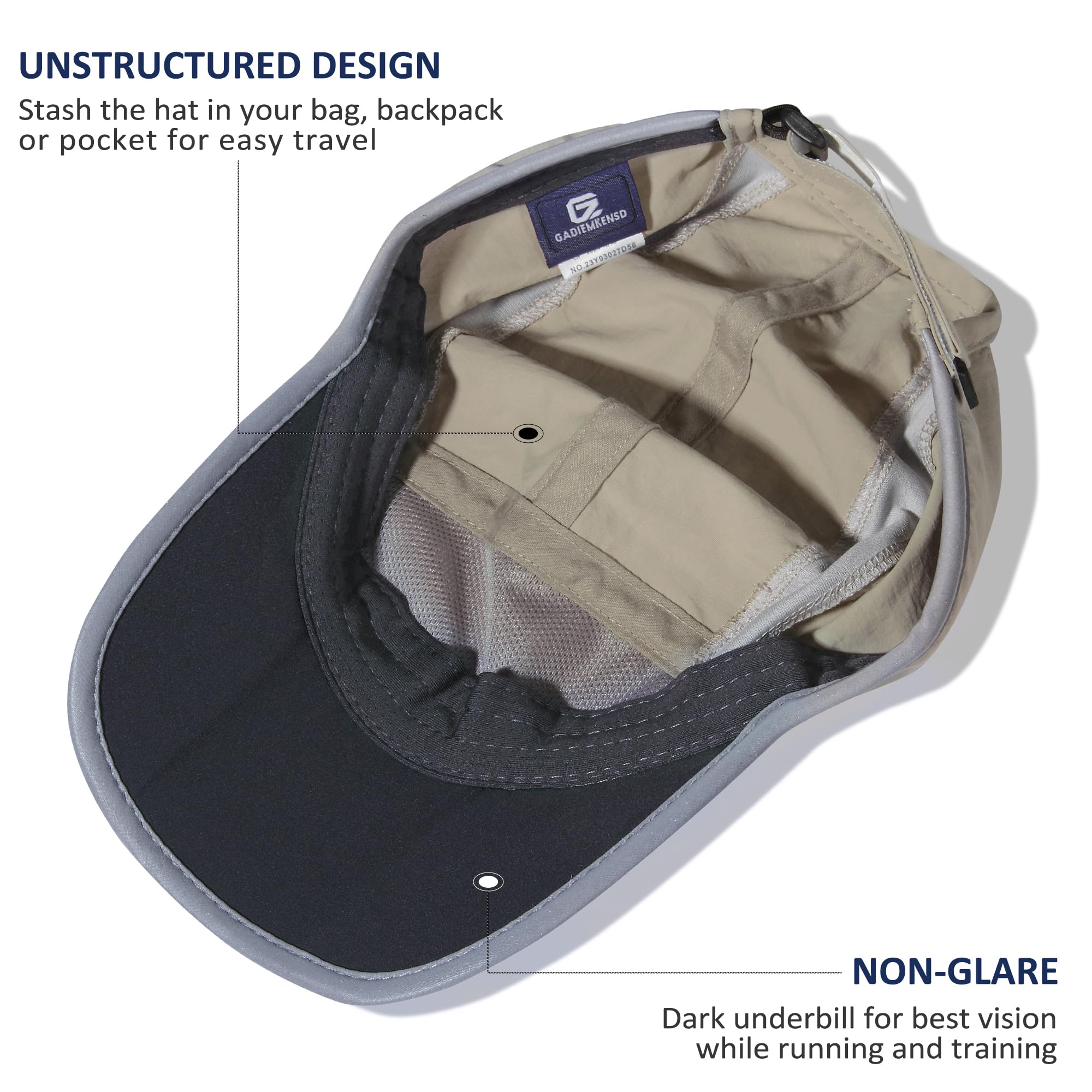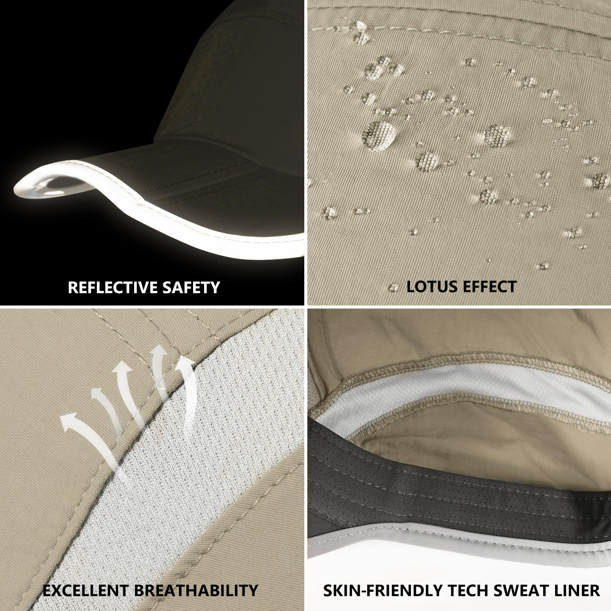 Reflective Foldable Brim: The brim with 3-panel bill design, can be folded and fit into any pocket or backpack. Reflective Brim for increased visibility and safety on low-light runs