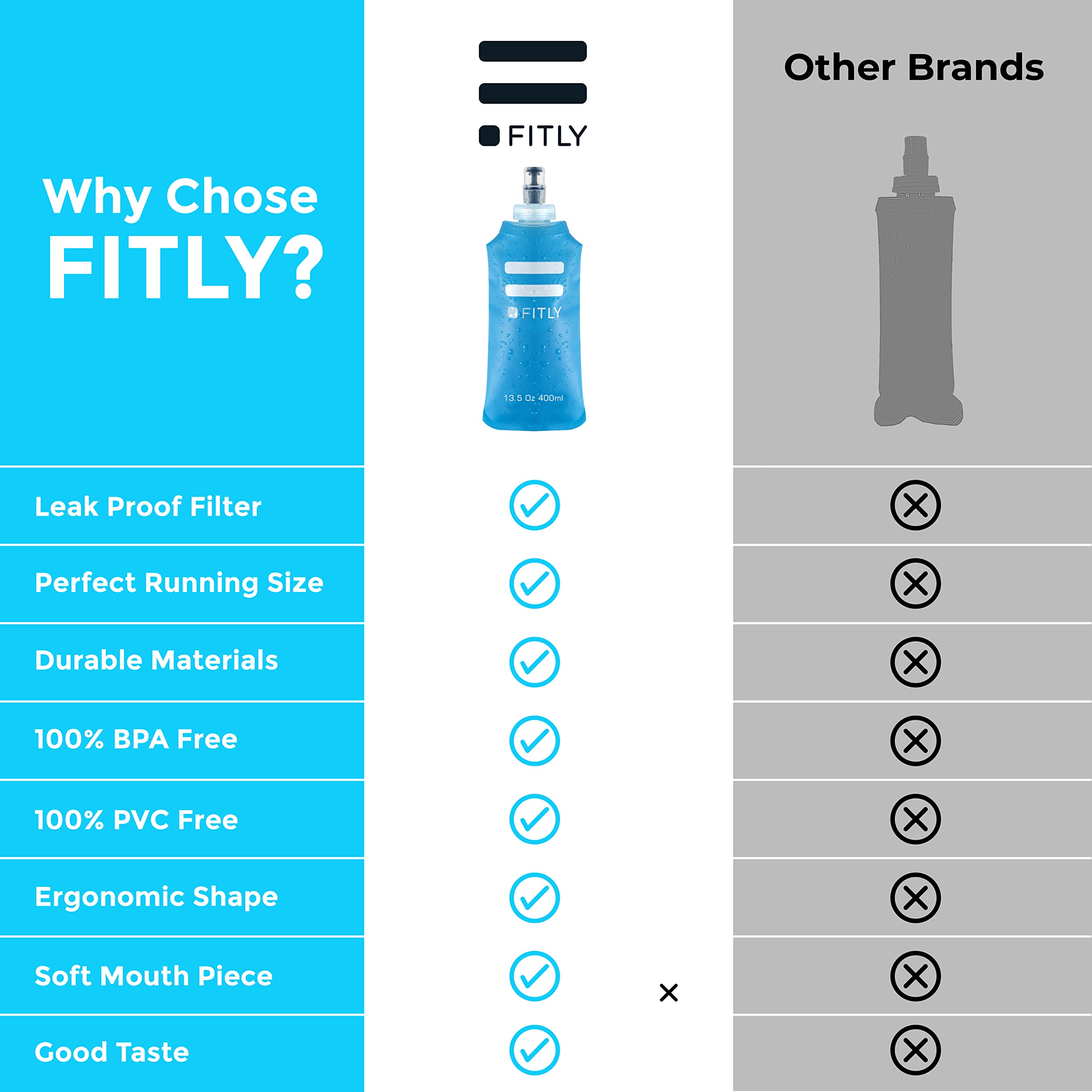 STAY LIGHT ON YOUR FEET: FITLY’s collapsible flask is purposely lightweight ensuring your light on your feet and not weighted down by unnecessary bulk. At FITLY, reusability is deeply important to us, and our water bladder is no exception. Enjoy limitless use from our portable soft water bottle for running vest that is 100% BPA & PVC-free.