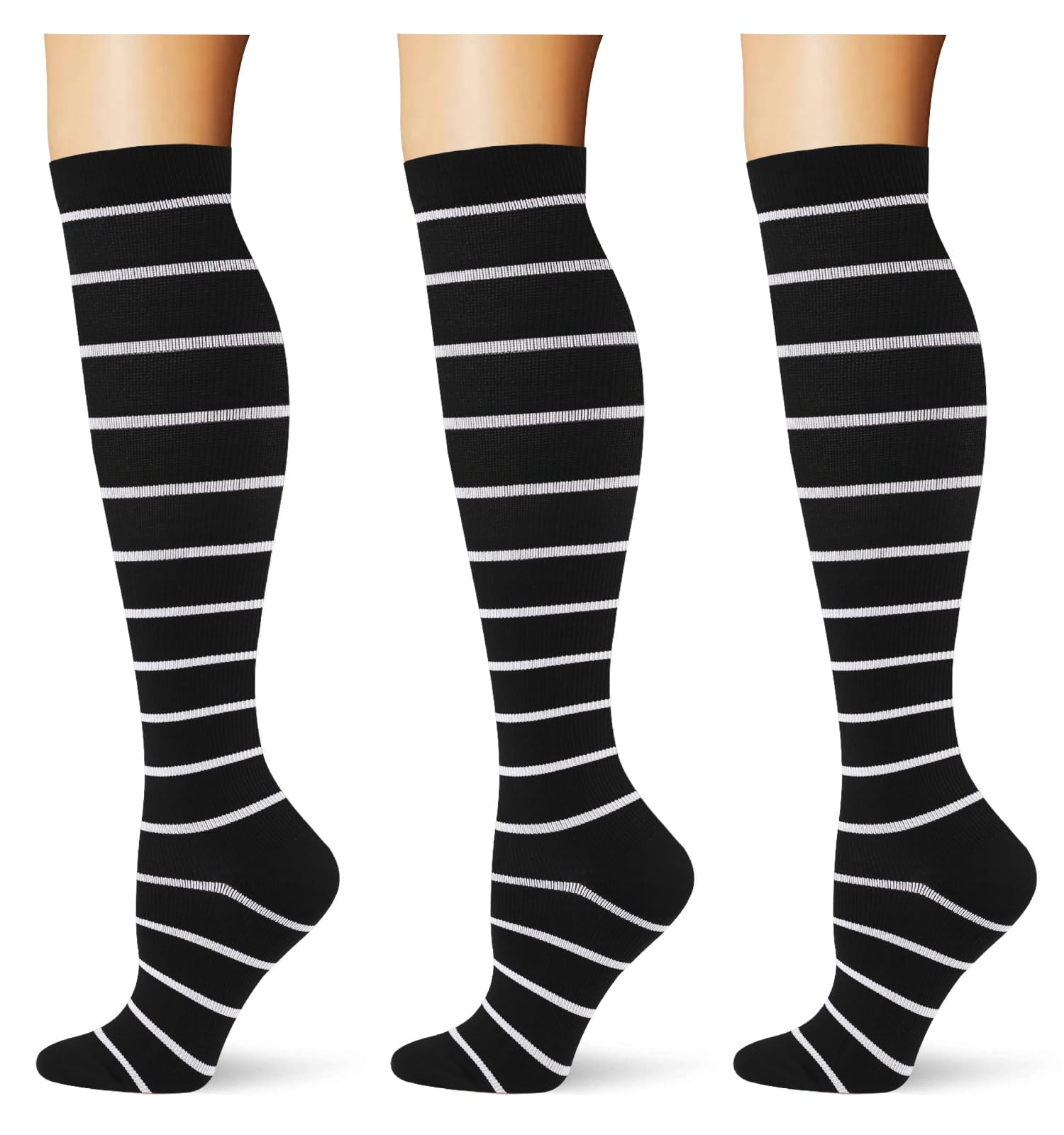 COMPRESSION: Our compression socks provide graduated compression, with pressure highest at the ankle and gradually decreasing upward. The targeted compression stimulates blood flow circulation, decreases muscular fatigue and improves athletic performance. These compression socks are suitable for sports training and daily wear.