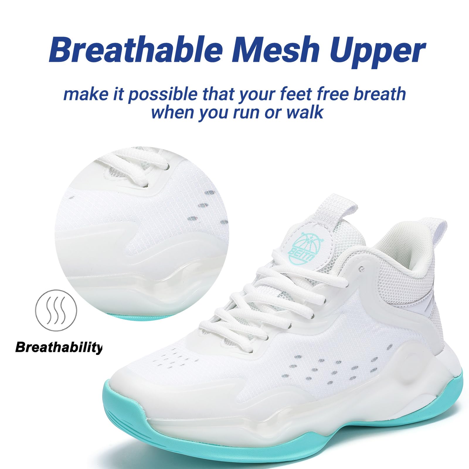【Breathable Mesh Upper】 Basketball shoes for women, Lightweight textile upper offers flexibility, make it possible that your feet free breath when you run or walk.