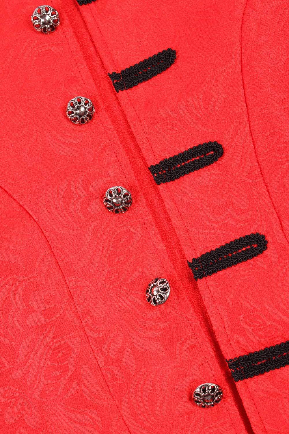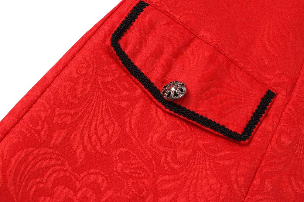 Feature:knee length frock coat,lapel collar,button up,long sleeve,side flap pockets with buttons and braiding.
