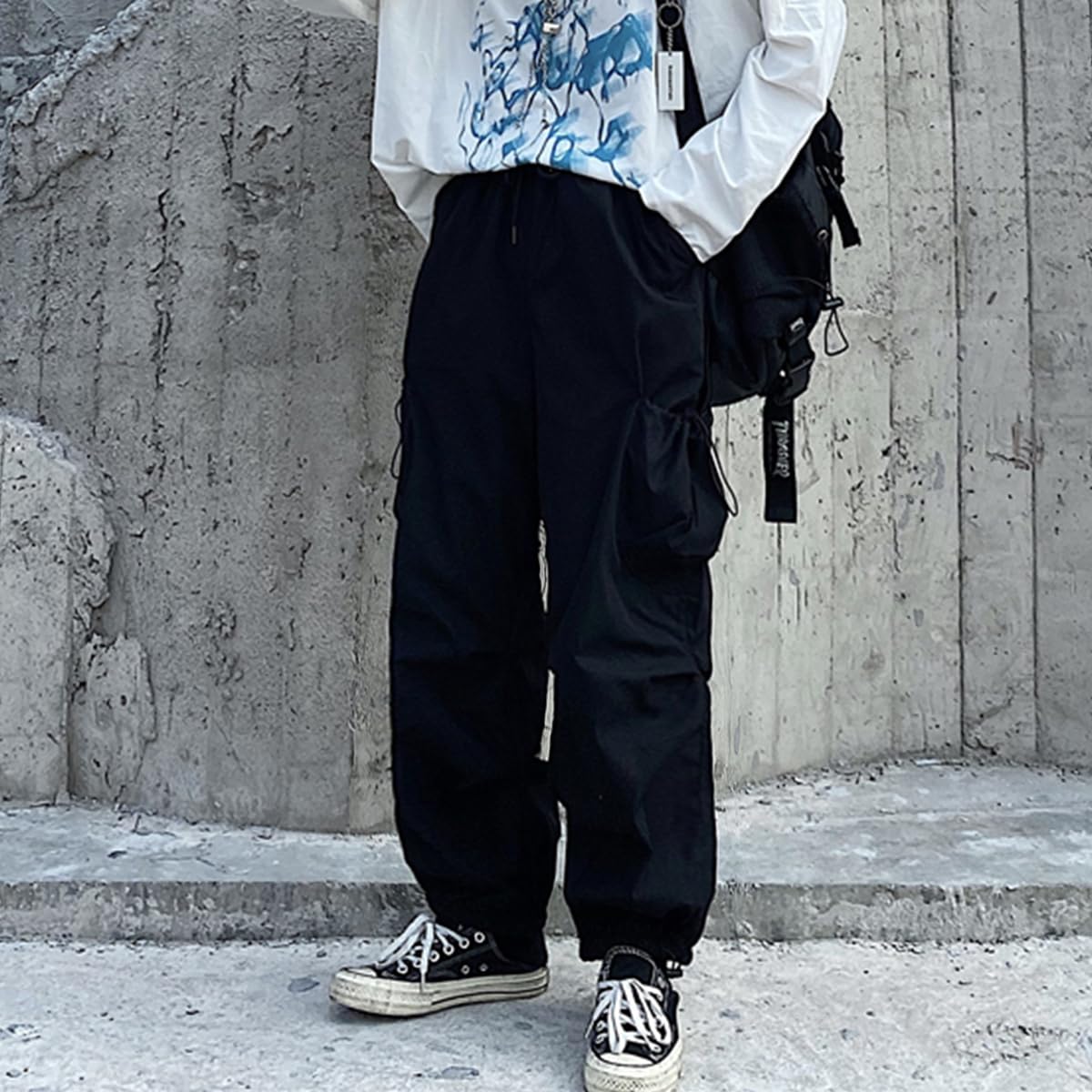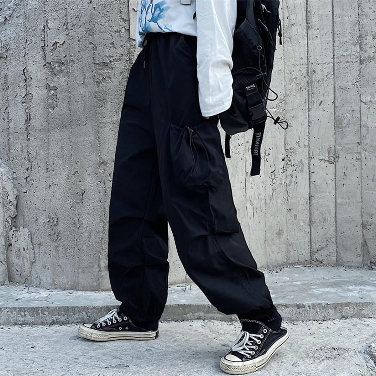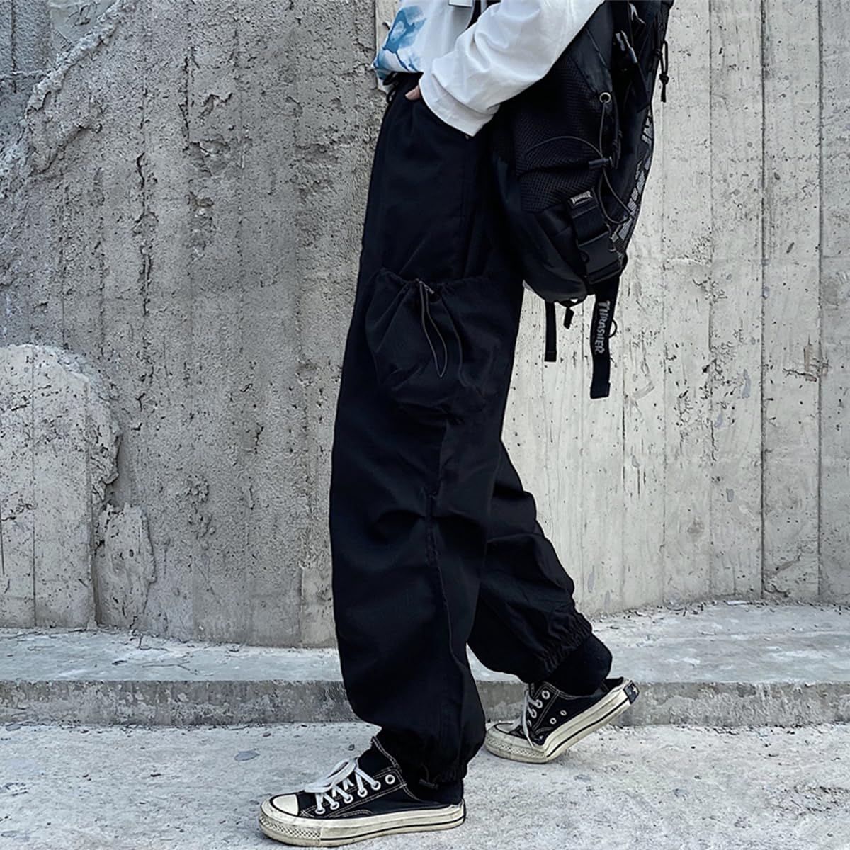 2 thigh pockets with drawstring of these parachute pants for women are not only practical but also stylish, 2 deep side pockets to hold your phones, wallet and keys, free your hands.