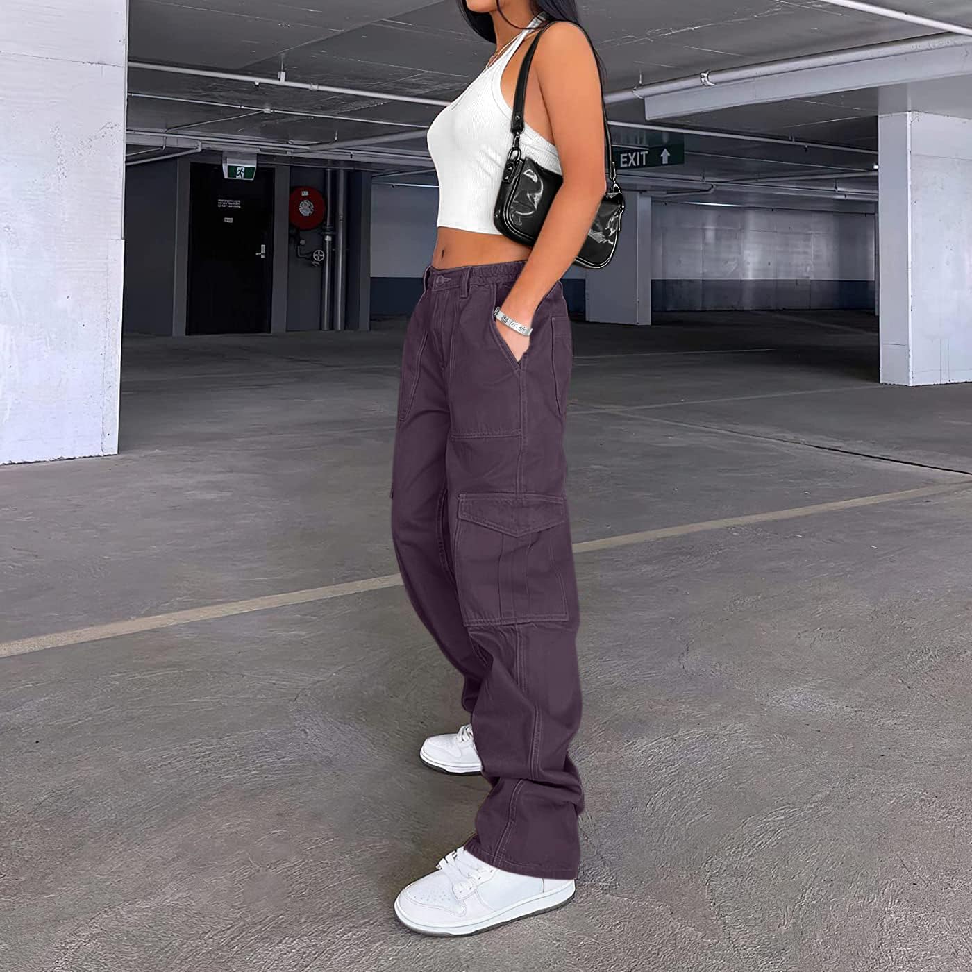 Features: Cargo pants with 6 pockets, stretch elastic high waist, relaxed fit, zipper and button closure, hip hop joggers sweatpants, wide leg cargo pants, Y2K style, hippie outfits, and the loose fit is ideal for casual or sporty.