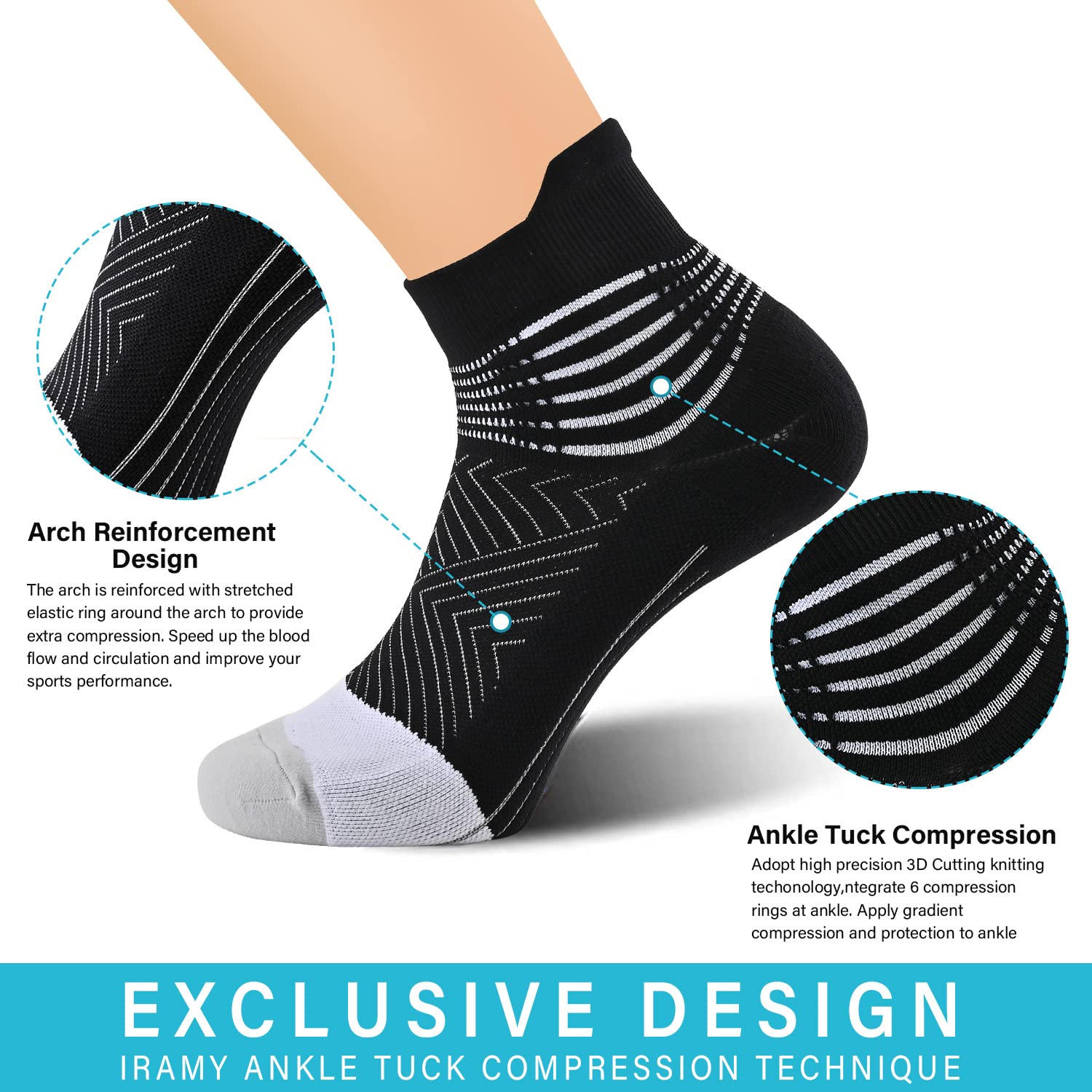 [Ankle Compression Support]IRAMY Compression Socks For Women offer premium ankle and arch support for enhanced athletic performance and reduced pain associated with various ailments. Featuring high-end air knitting technology and 6 compression rings at the ankle, our socks provide ultimate protection and comfortable full range compression. Even pressure around the ankle joint reduces muscle fatigue and swelling from plantar fasciitis.