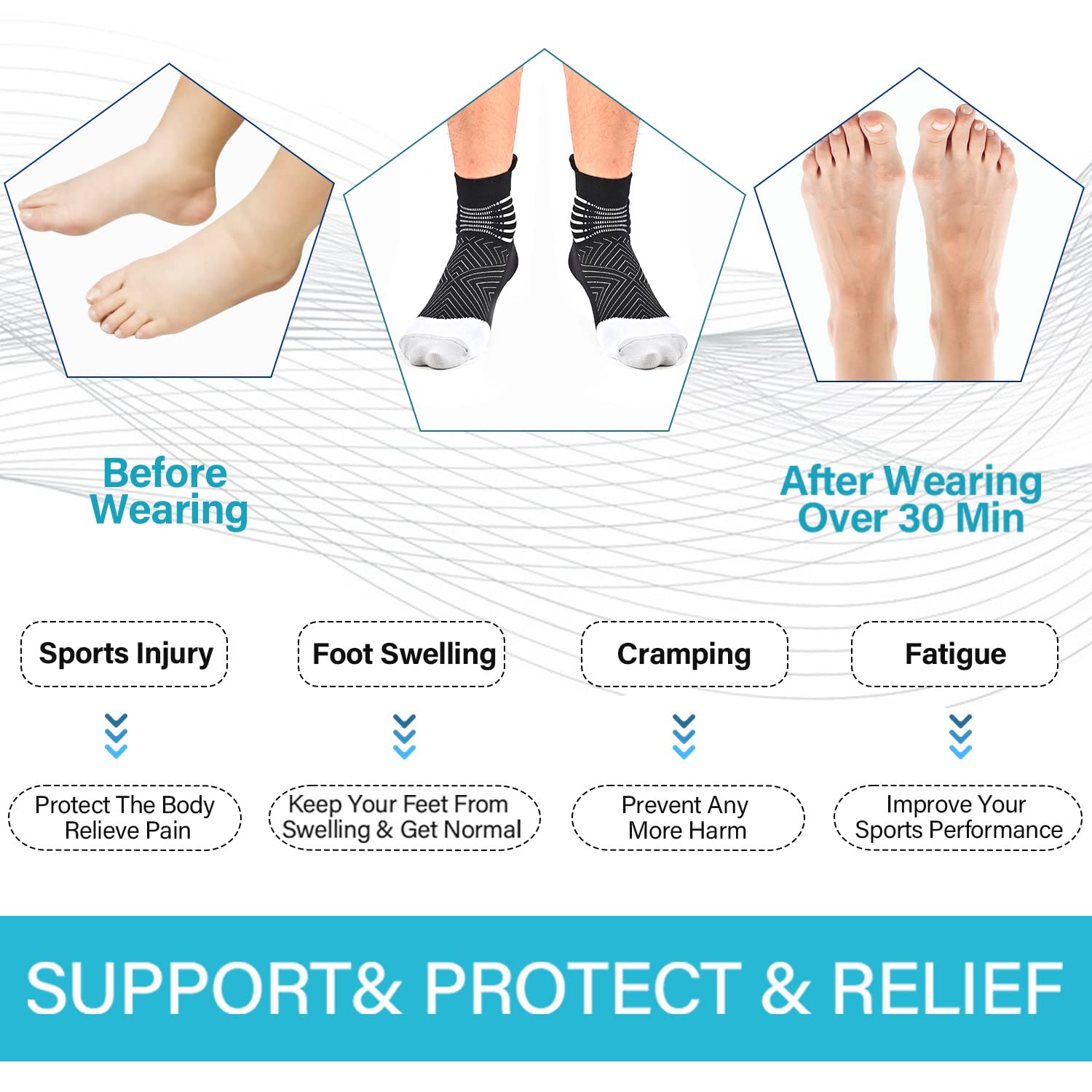 [Arch Support]Our Compression Socks' arch is reinforced with stretched elastics to provide extra compression and protection, improving circulation and significantly reducing pressure on the muscle. This helps injuries recover faster and keeps your leg warm.
