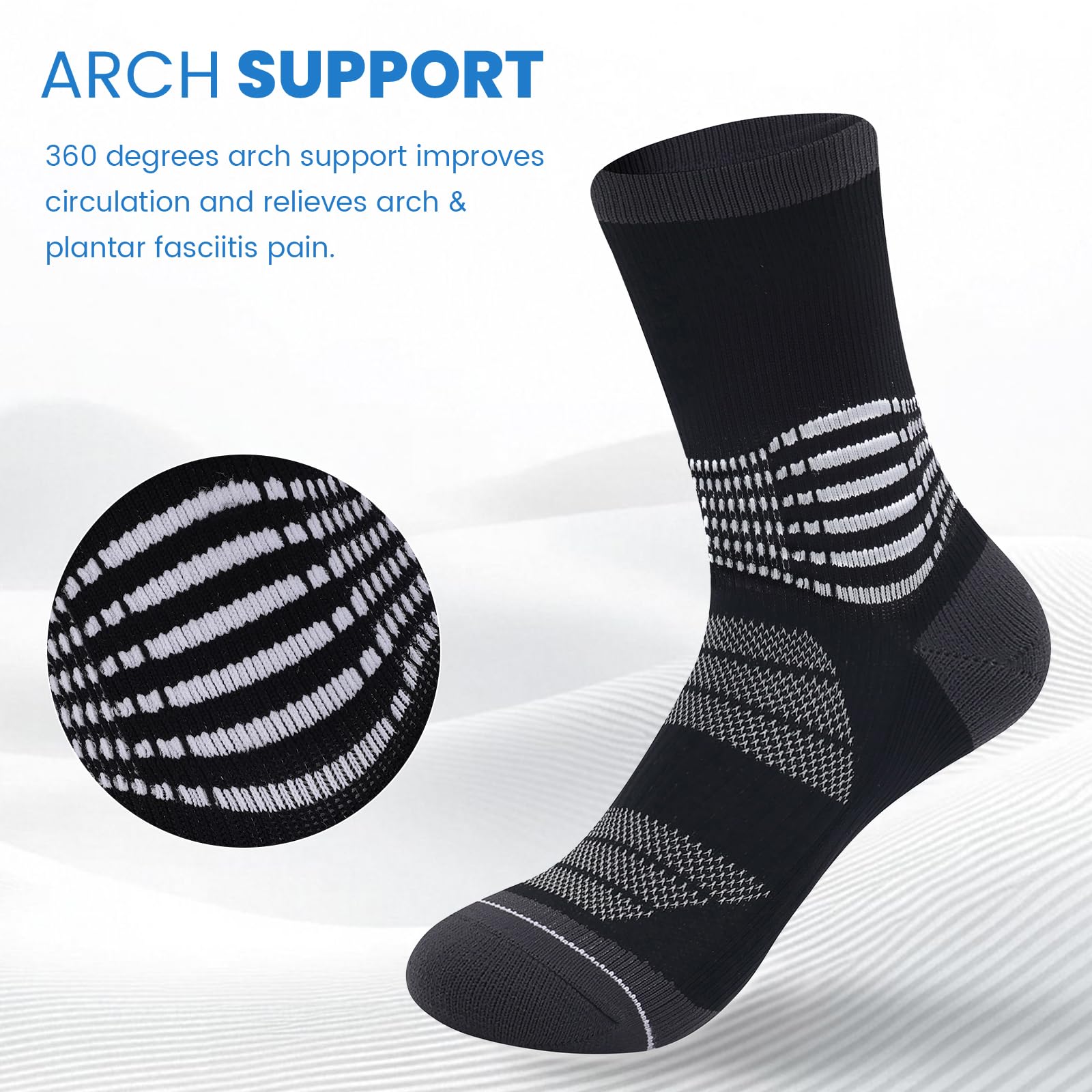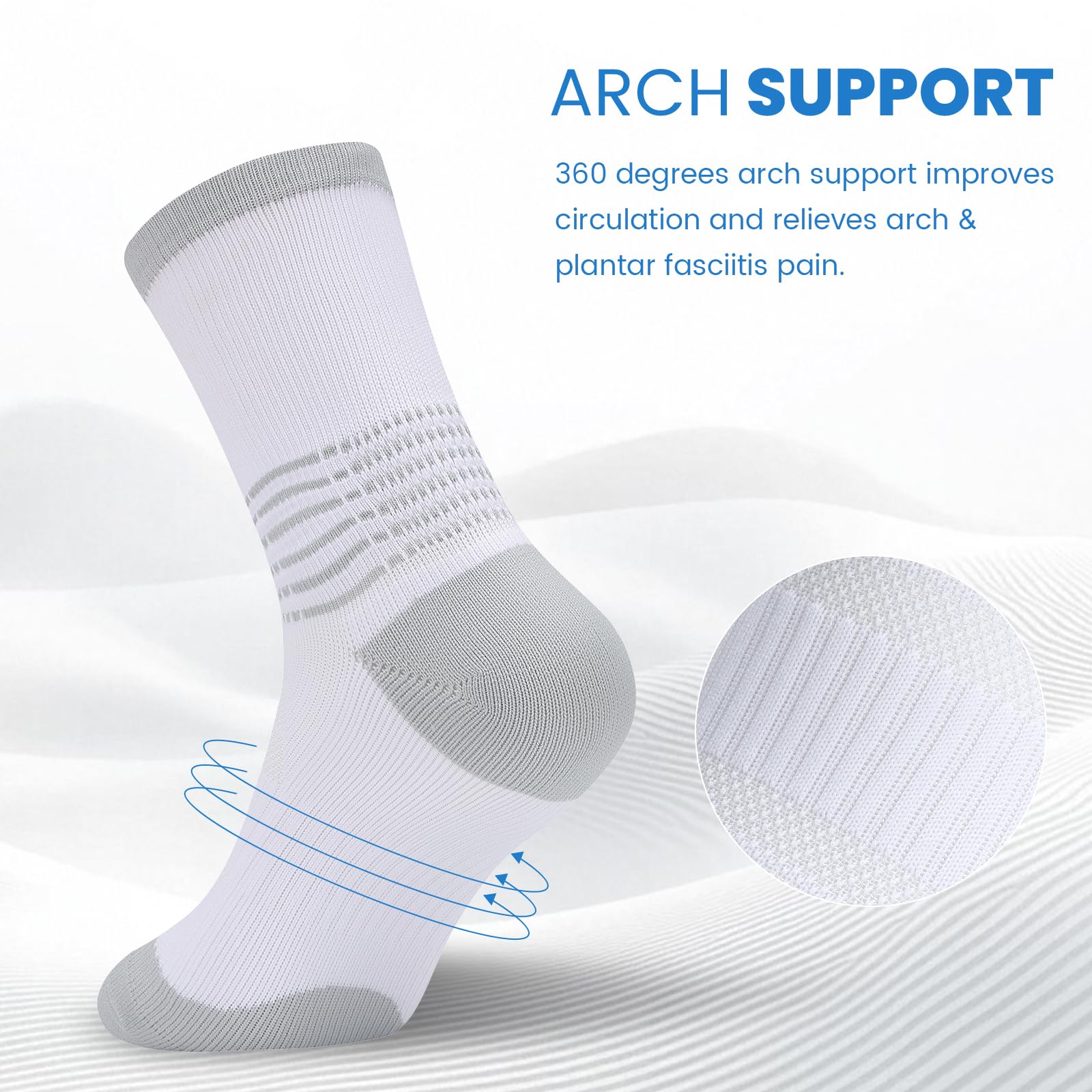 360° Arch Support:Our arch support socks feature full-circle compression to relieve plantar fasciitis pain and foot fatigue. The ergonomic design targets pressure points, providing all-day comfort for professionals on their feet and anyone battling plantar fasciitis relief—no more post-work foot soreness!