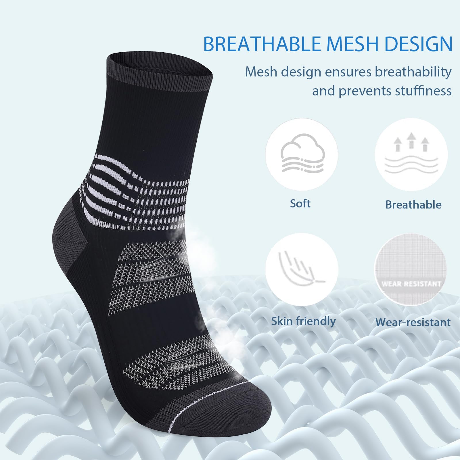 Breathable & Fast-Drying Comfort:Our compression socks are designed with premium quick-drying fabric and breathable mesh panels across the instep to enhance airflow and speed up moisture evaporation. Perfect for running, hiking, workouts or everyday wear,keeping your feet comfortably dry through any activity