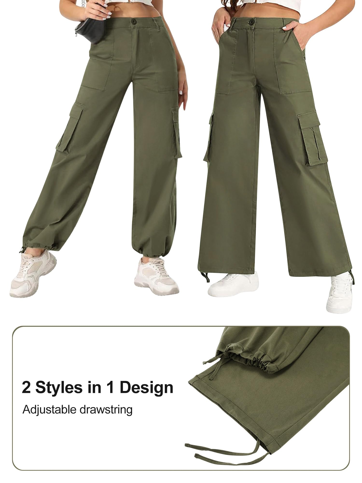 WIDE LEG & TAPERED LEG: These baggy cargo pants can be worn straight or cinched at the bottom for a tapered, jogger-like fit. The wide leg cargo pants for women have a relaxed shape that keeps the look and feel casual. Pull and tie the drawstring at the hems could change the shape, being a jogger-style cuffs for a clean stride