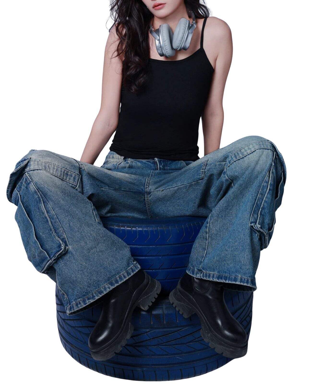 Material:Blue cargo jeans for women is made of 70%denim,30%other. Wear this baggy jeans to highlight your temperament(The size is relatively large. If it is between two sizes, please choose one smaller size)