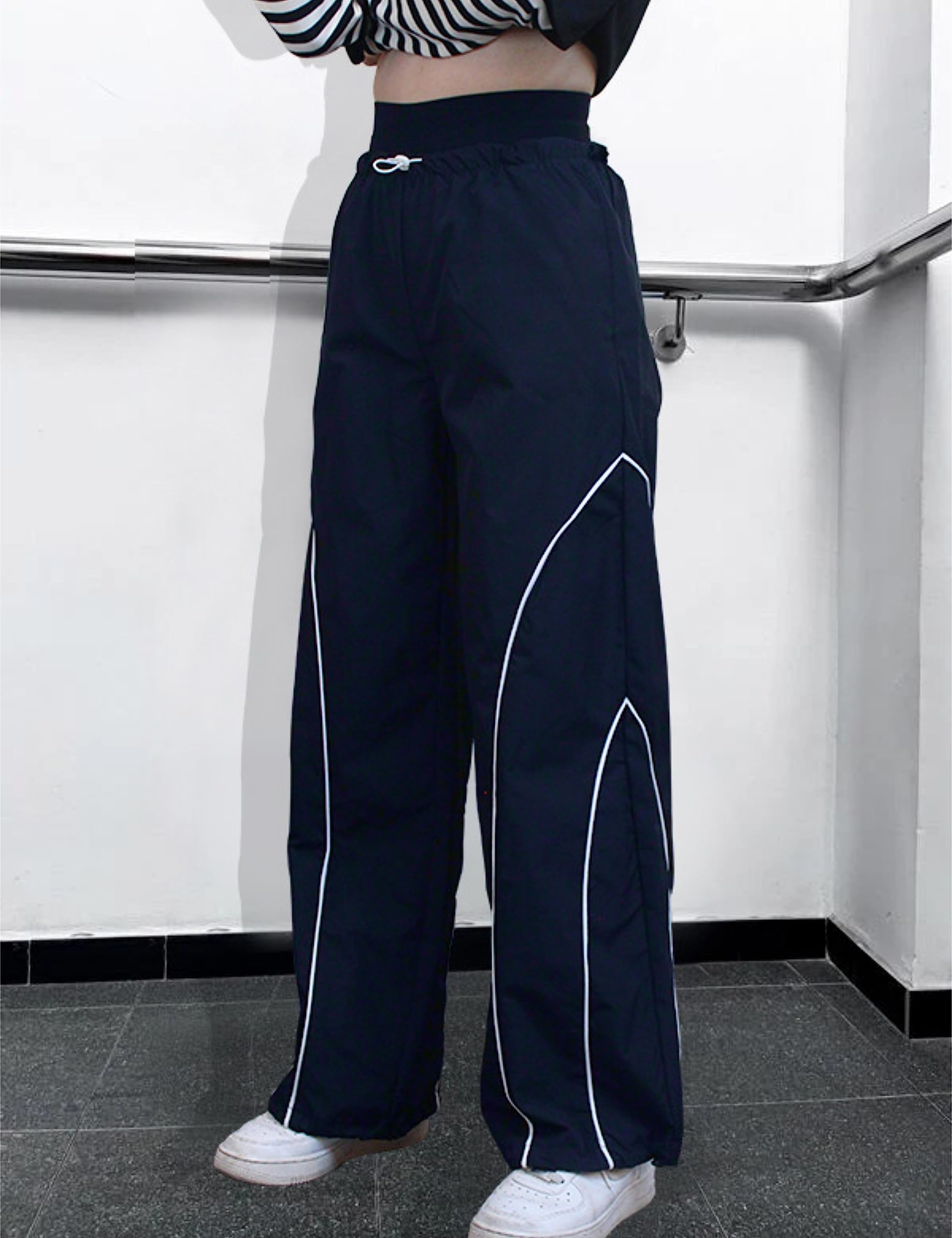 Women's black white parachute pants baggy Y2K elastic waist wide leg track pants trousers, lightweight and comfortable, straight wide leg pants with drawstring, suitable for different shapes and sizes. Also suit for spring, summer, fall and winter