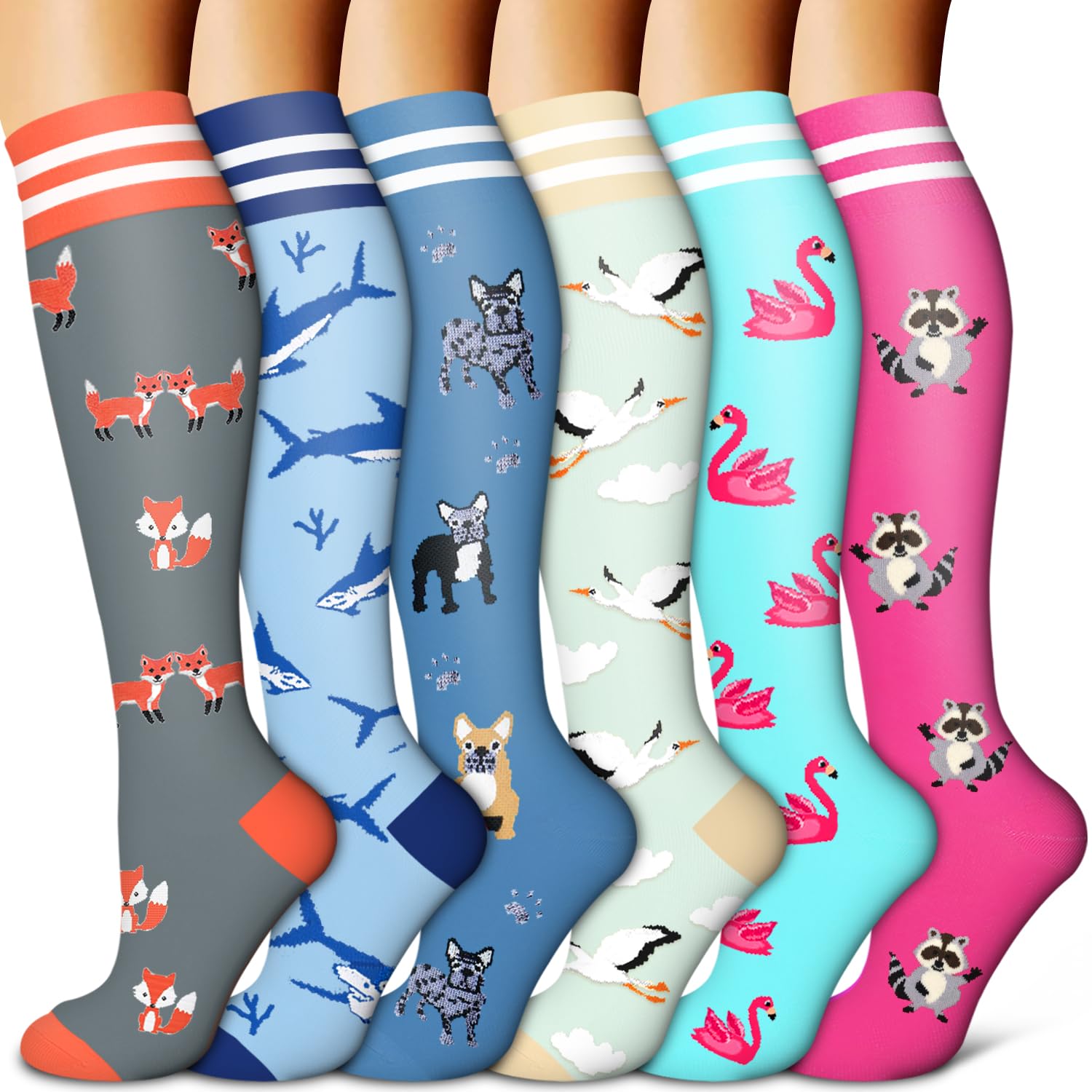 COMPRESSION SOCKS 20-30 mmHg. A Durable Compression Socks have wide variety of fun colors and designs specially for nurses, size rang cover both women and men. Double stitched with functional Fabric and knitted with seamless compression technology. Fits comfortable, easy to get on and delivers 360° support to feet and legs. Knee high long sleeves compression socks make sure the graduated support effect entire calf.