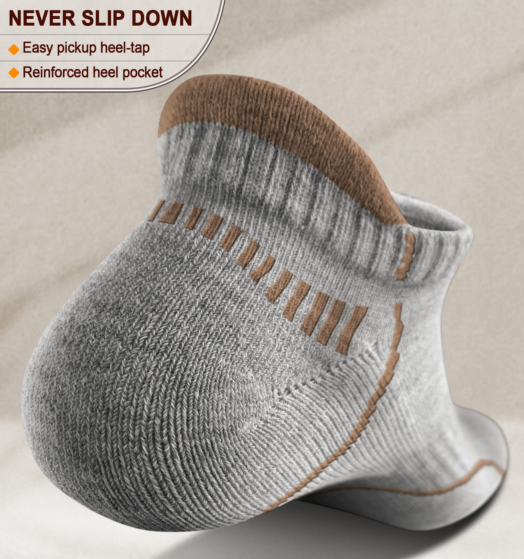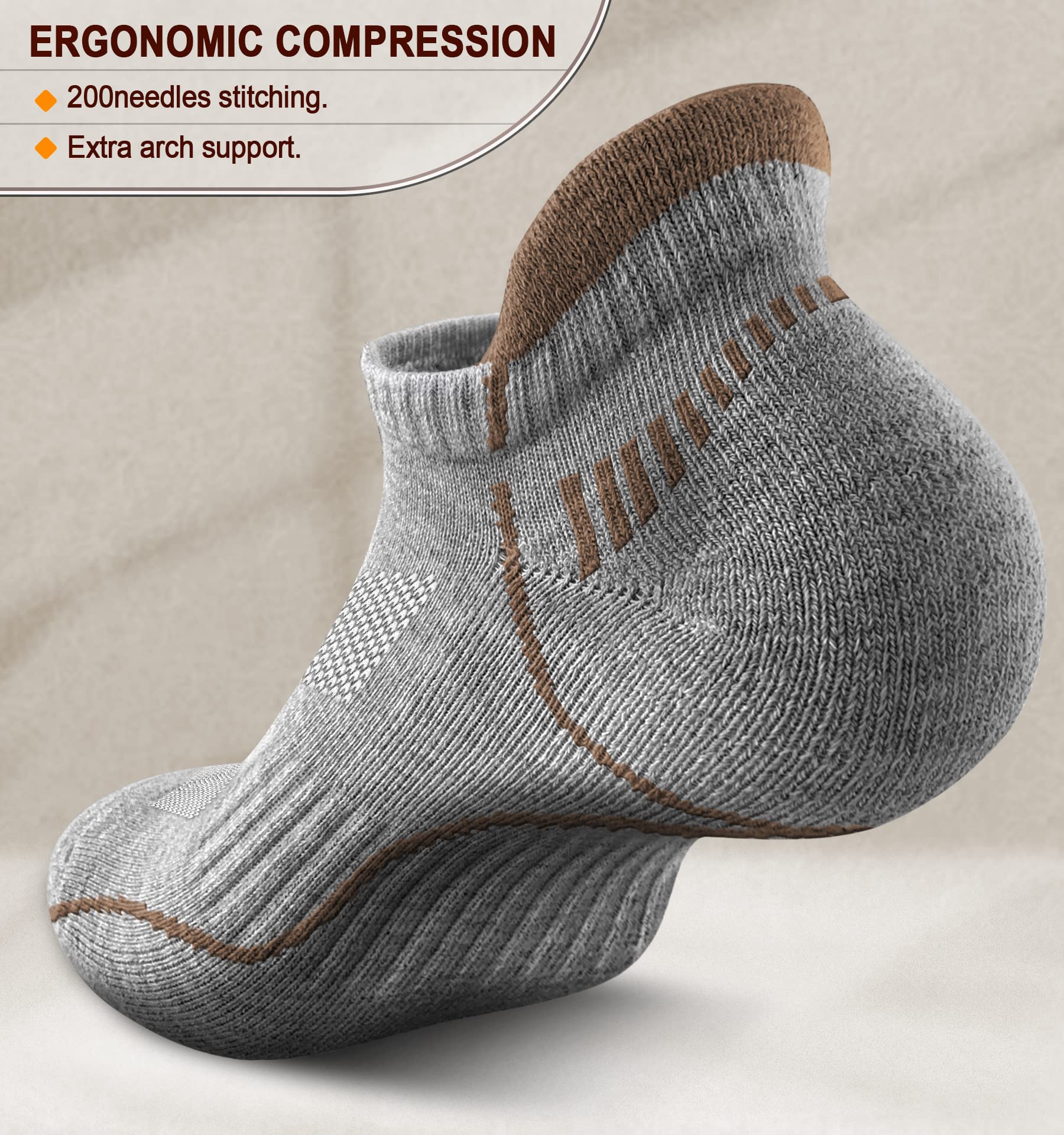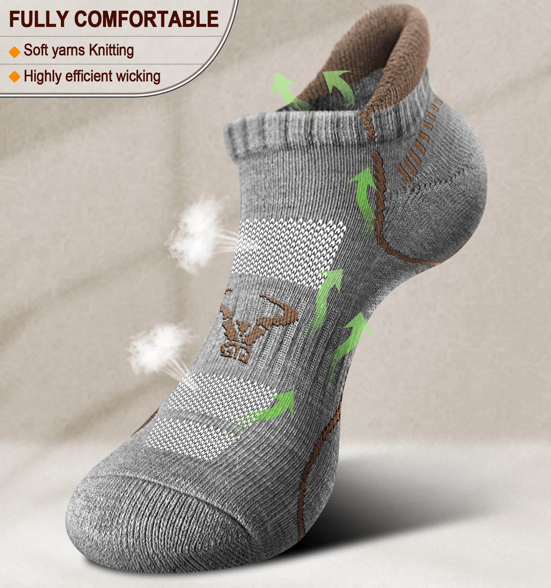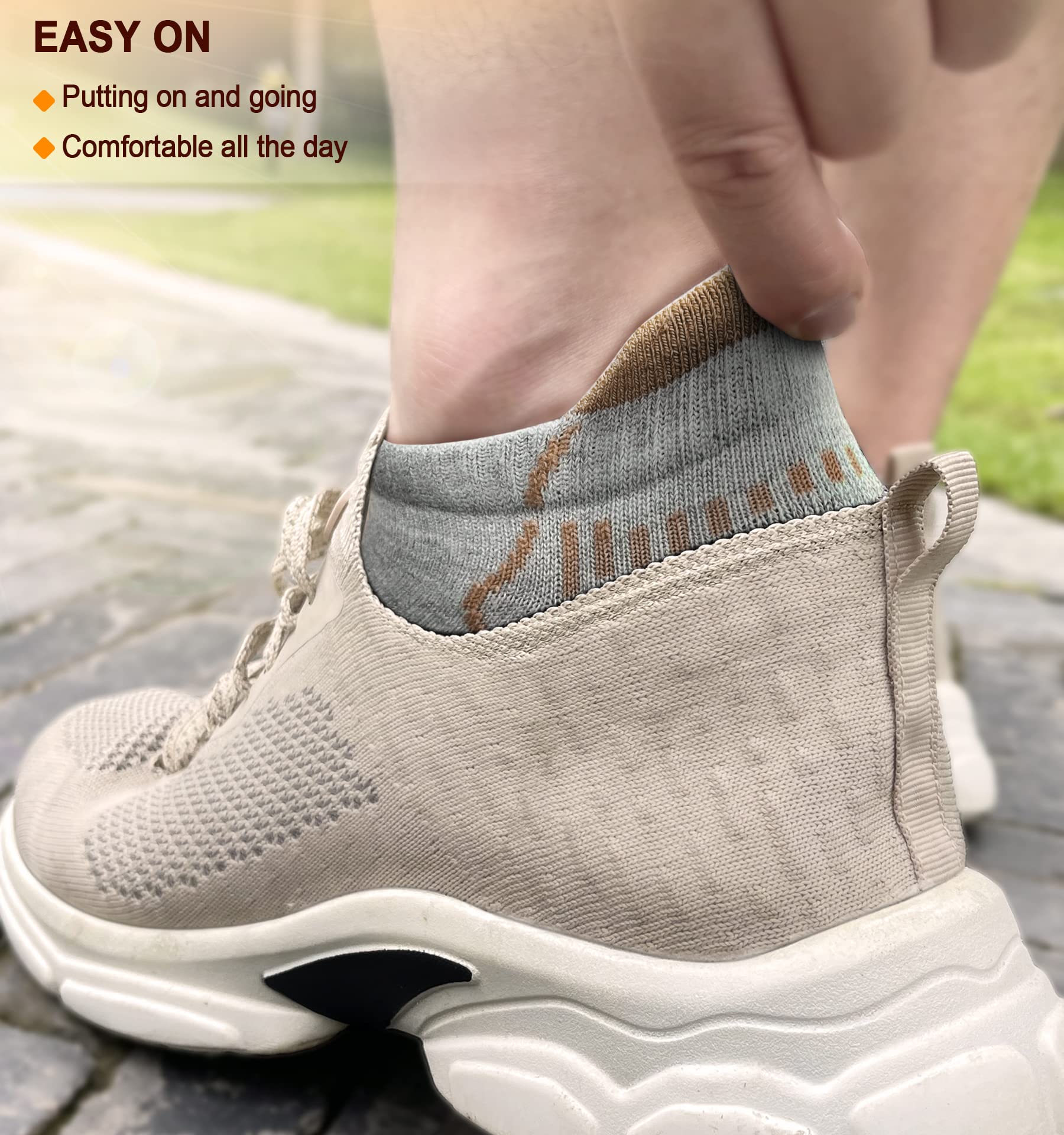 BREATHABLE--Low cut socks with high efficient wicking yarns,plus the net kitting on instep,these socks are super breathable to keep your feet dry and comfortable specially in walking or jogging;