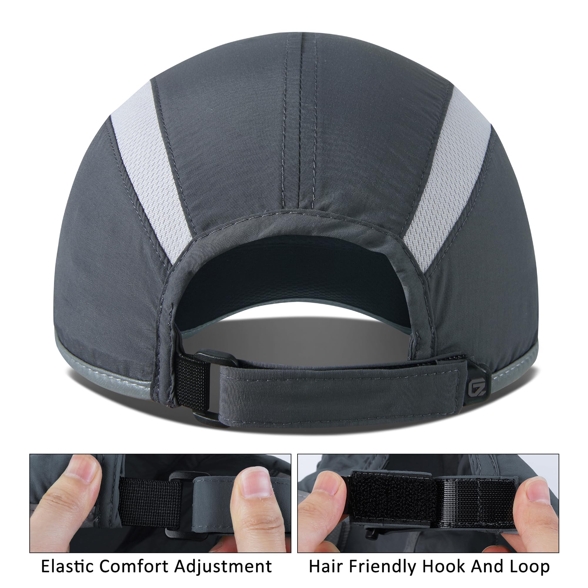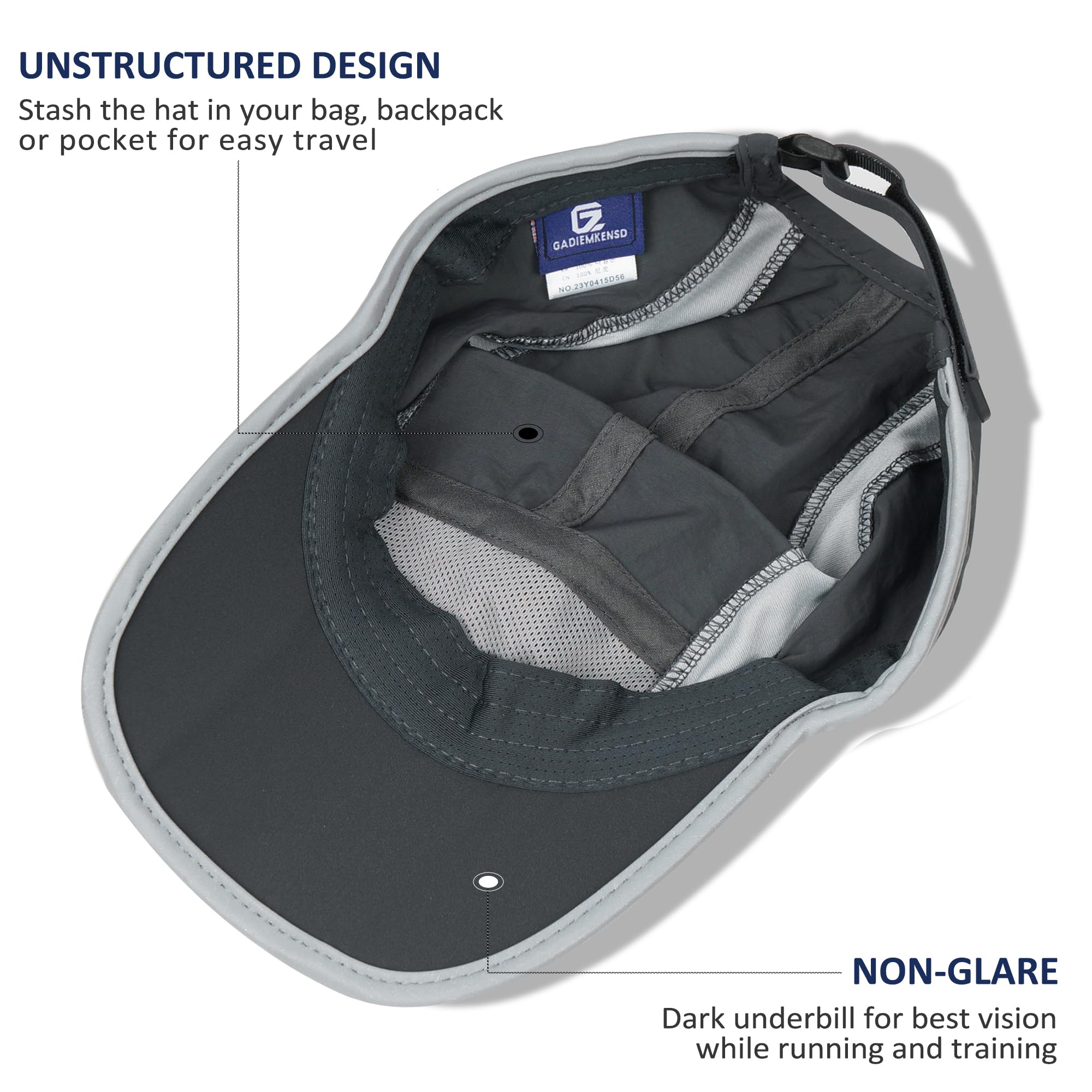 Reflective Foldable Brim: The brim with 3-panel bill design, can be folded and fit into any pocket or backpack. Reflective Brim for increased visibility and safety on low-light runs