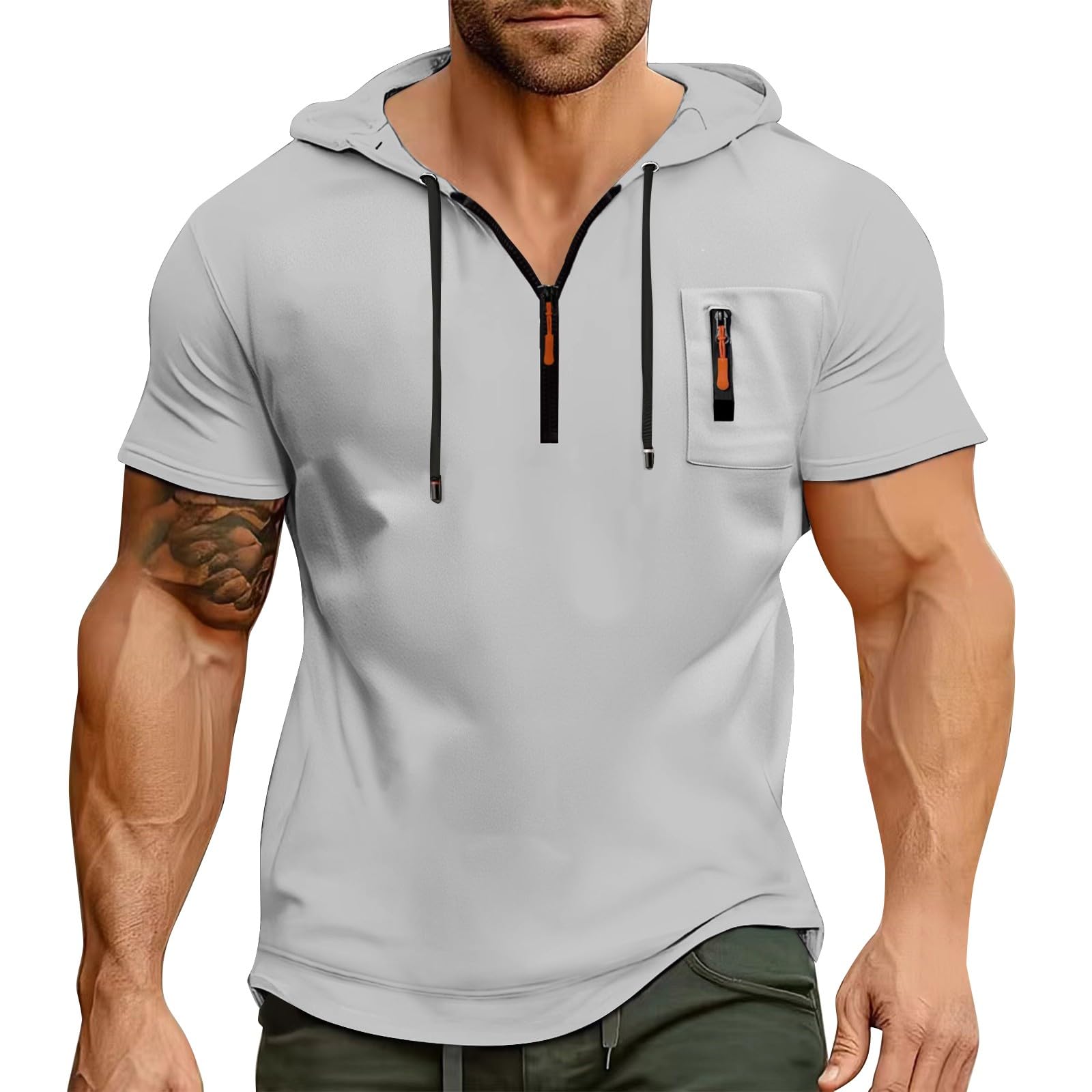【Design】This short sleeve hoodies for men features a classic drawstring hood style, short sleeve, 1/4 zipper placket, multiple pockets, ribbed cuffs and hem, and has elasticity and enhanced freedom of movement.