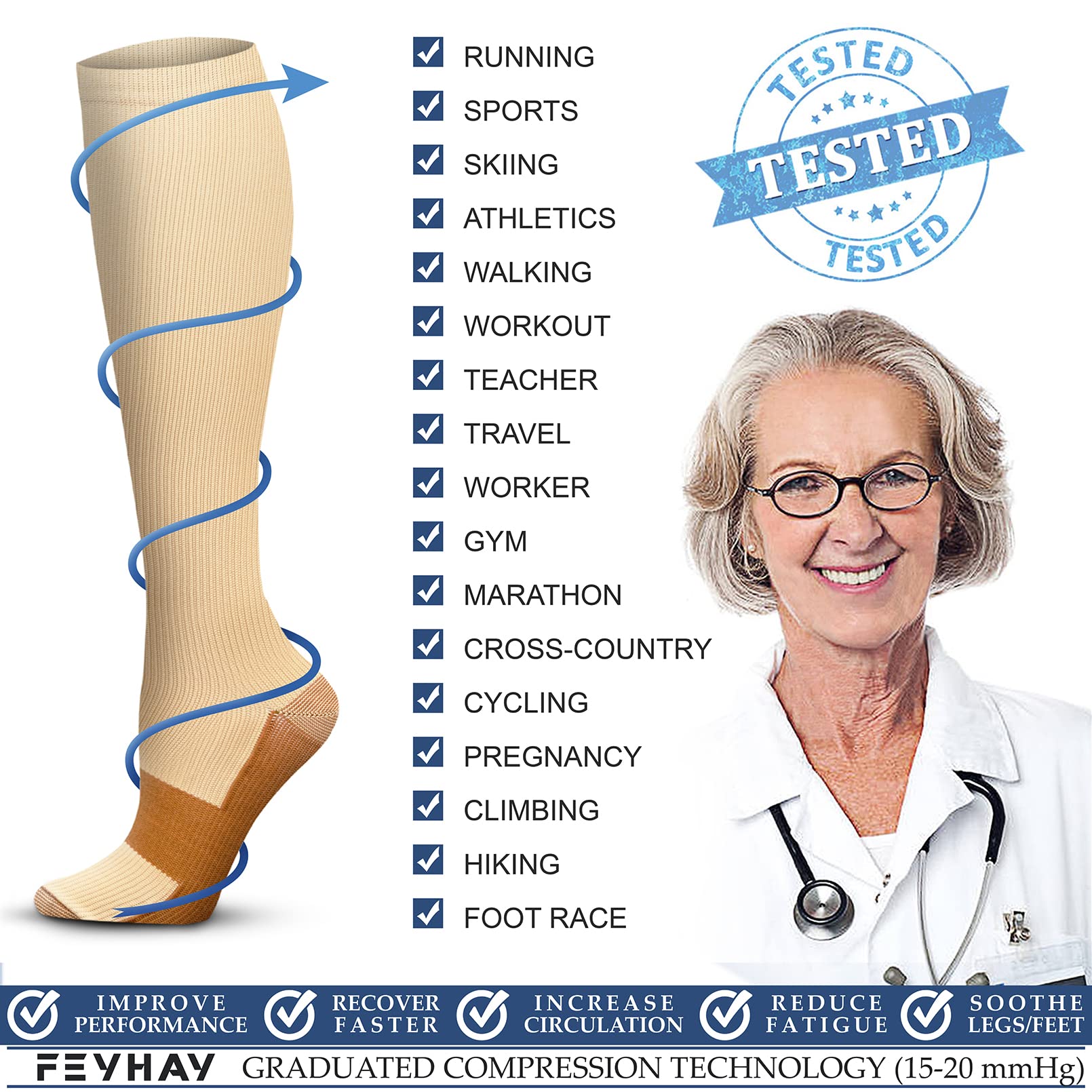 COPPER FIBERS - Copper is a great conductor of electricity, we extended its natural property to rejuvenate blood circulation in your legs through copper fibers capable reviving blood circulation along with providing a 15-20 mmHg compression. Socks are designed according to the structure of the legs and soles of the feet, and have a good effect of relieving fatigue of legs. It offers the most perfect settlement scheme for those who sit for long period during travel or at work.