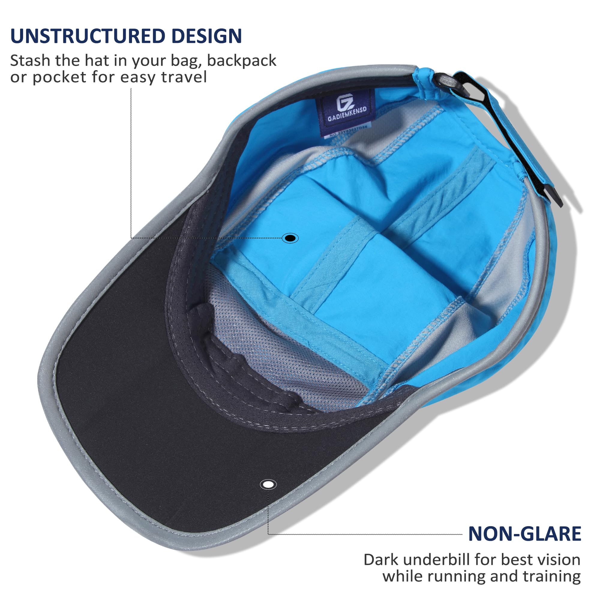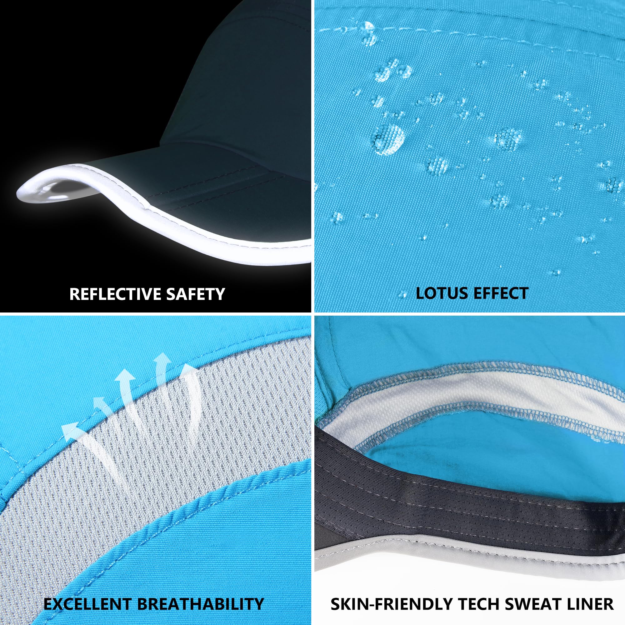 Reflective Foldable Brim: The brim with 3-panel bill design, can be folded and fit into any pocket or backpack. Reflective Brim for increased visibility and safety on low-light runs