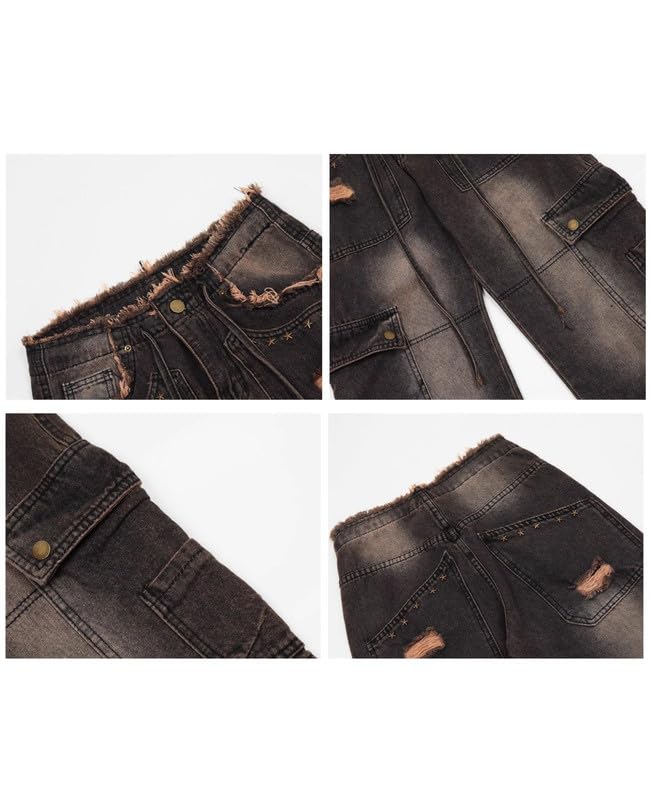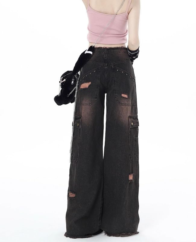 Features:Low waist baggy jeans with big pockets, stretch elastic low waist,zipper and button closure hip hop, wide leg cargo pants, y2k style, grunge outfits, and the loose fit is ideal for casual or sporty.