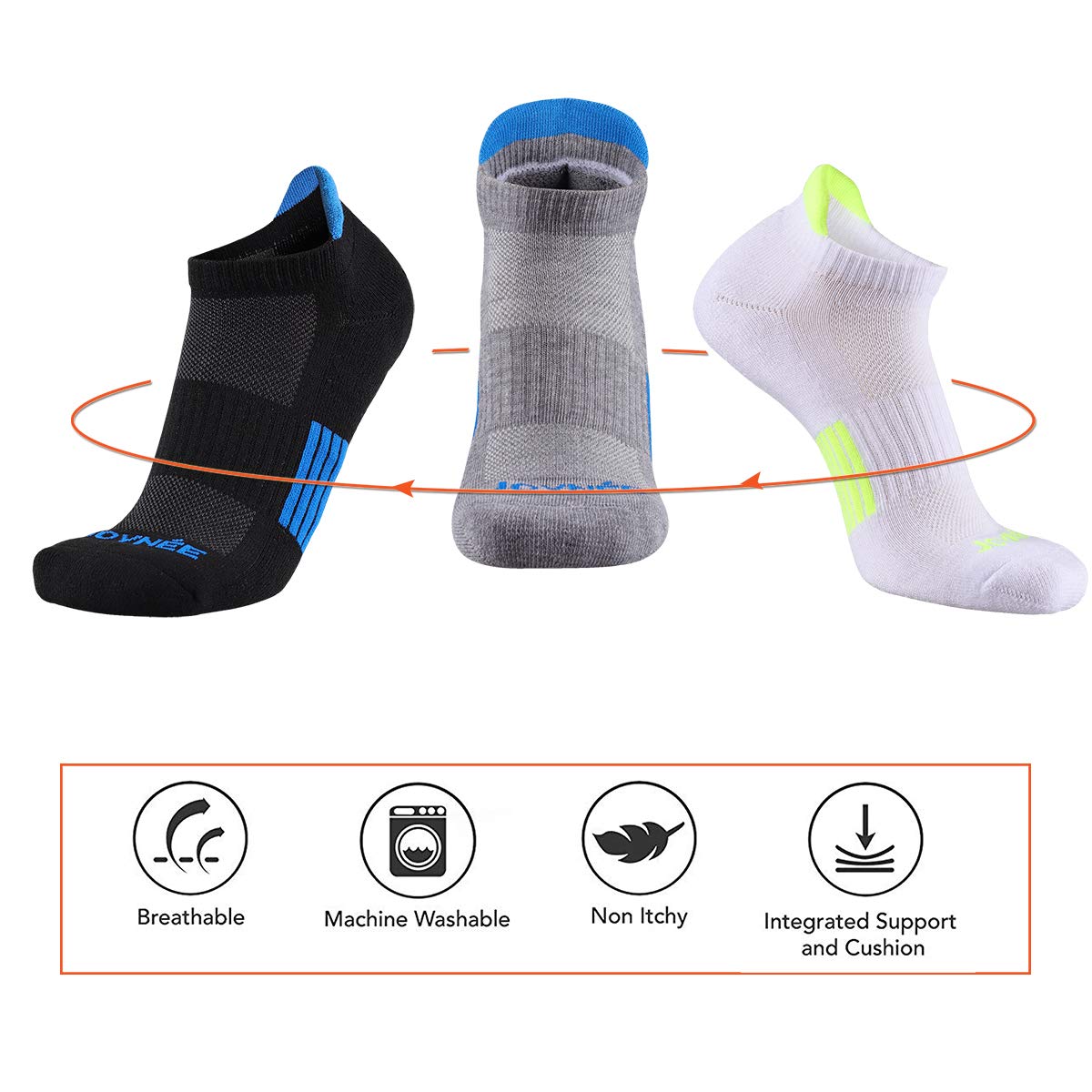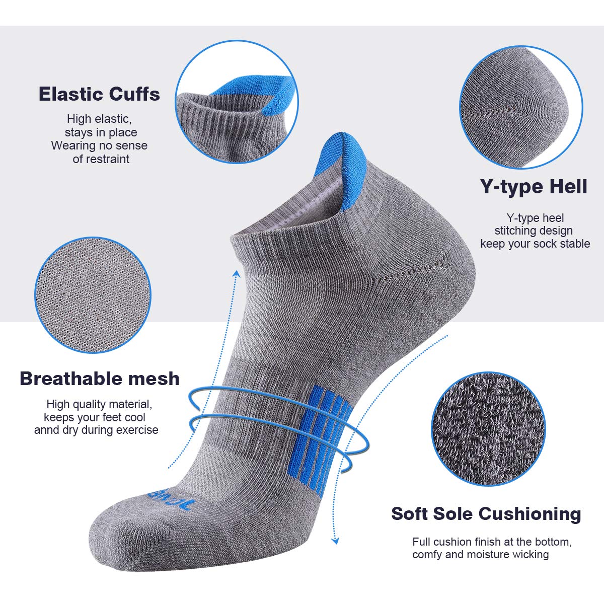 BEST ANKLE RUNNING SPORTS SOCKS for MEN – Made of 95% polyester,5% spandex. High quality material makes the athletic socks so breathable, comfortable to wear all day without irritating your feet skin.