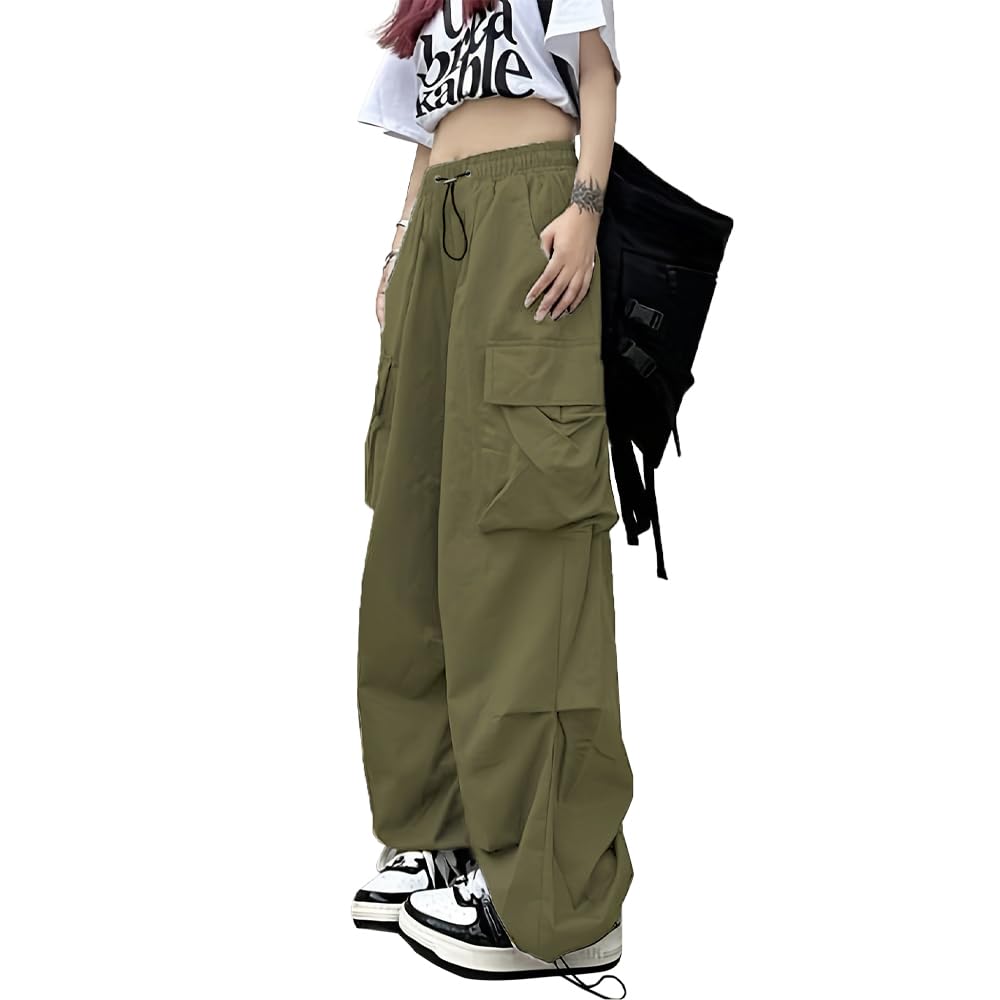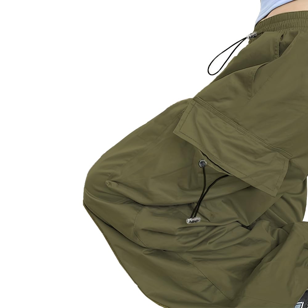 DESIGN: Baggy and Loose Fit . Five Drawstring Design ,2*Slant pockets and 2 Big Style Bag, Elastic Waist ,Y2K/Gothic/Hippie Style, Ruched Parachute Cargo Pants,